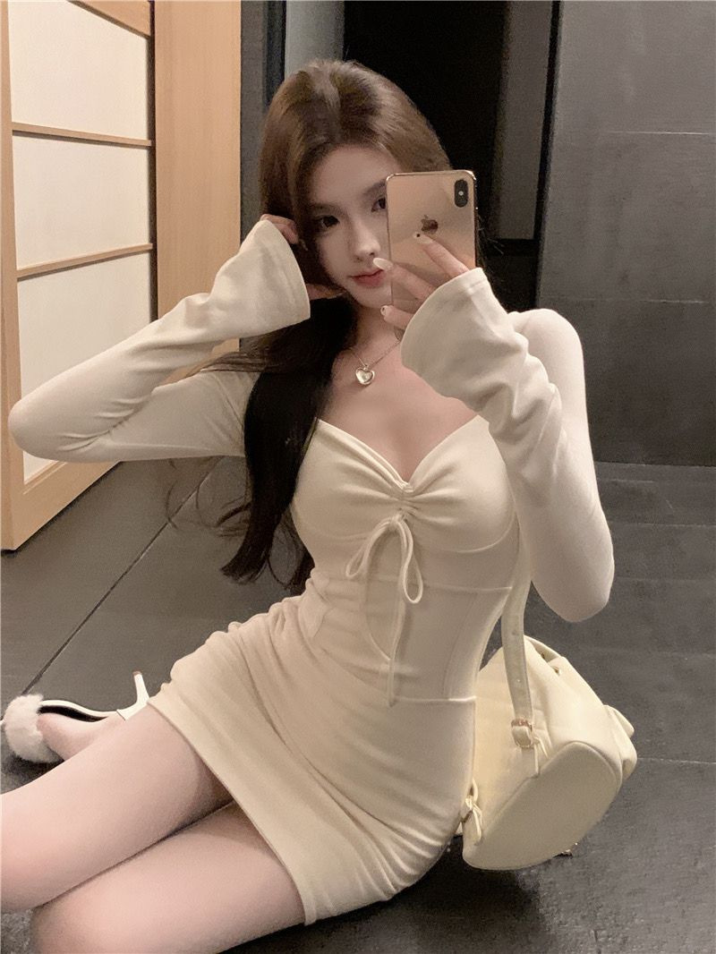 Главная страница > Новое осенне-зимнее облегающее платье-боди с длинным рукавом, универсальное, с завязками, для женщин, в стиле сладко-пикантный, сексуальный.
