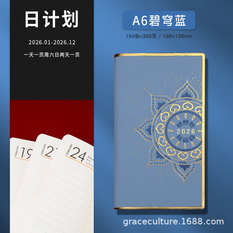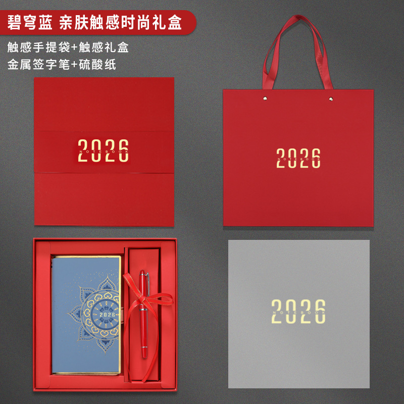 Полный годовой календарь на 2026 год, формат A6, небесно-голубой, модная подарочная коробка с мягким покрытием красного цвета
