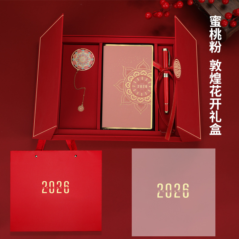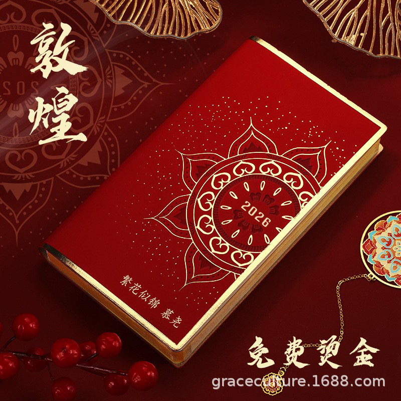 Календарь на весь 2026 год, формат A6, красный китайский Дуньхуан, цветущий подарочный набор