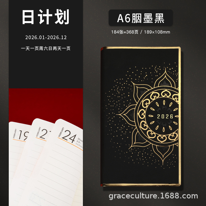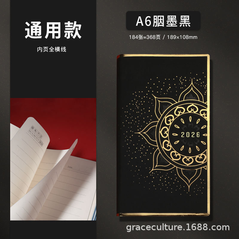 Календарь на весь год 2026, черные чернила A6, цветущая подарочная коробка Дуньхуан