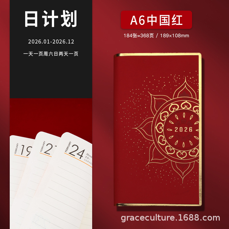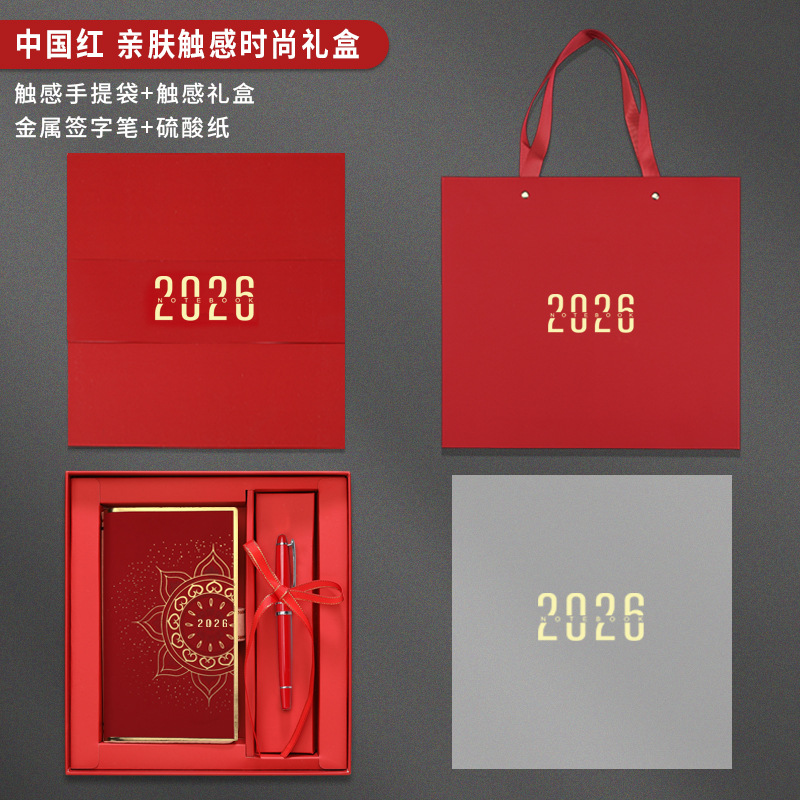 Календарь на весь 2026 год, формат A6, черные чернила, приятная на ощупь текстура, стильная красная подарочная коробка