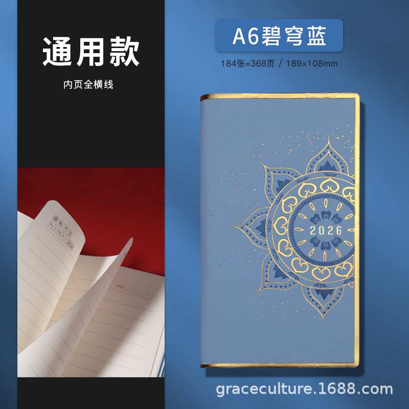 Ежедневник-планер 2026 A6 «Цветы Дунхуаня», компактный портативный блокнот для бизнеса и офиса, руководство по повышению эффективности