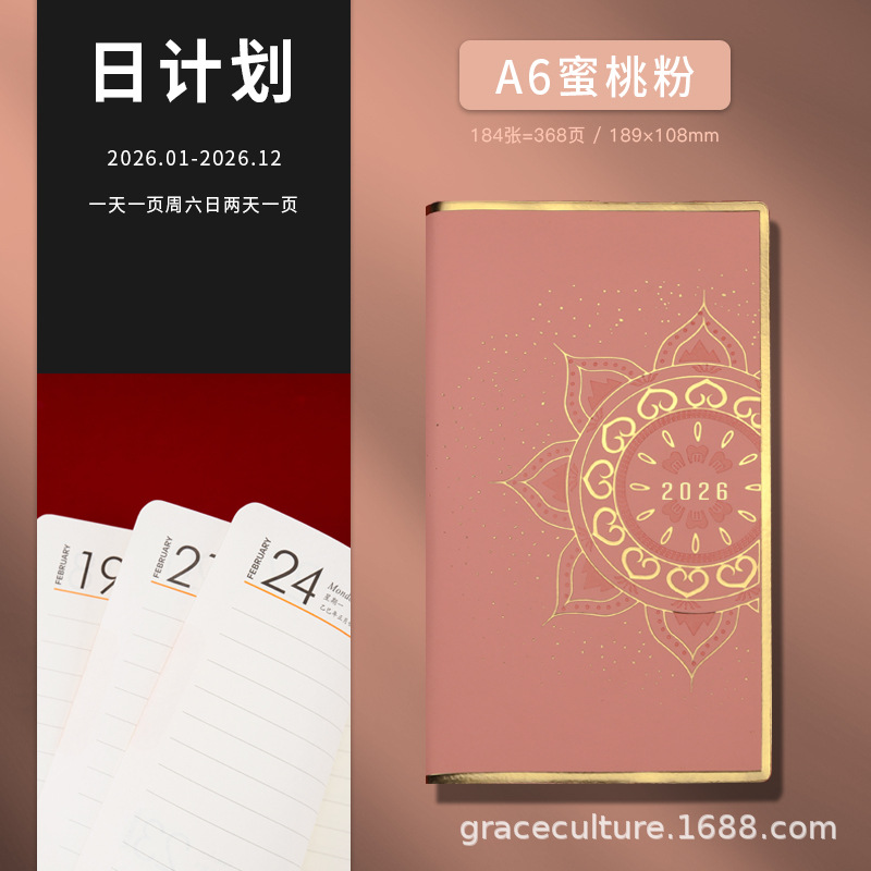 Календарь на весь год 2026, формат A6, персиково-розовый, приятный на ощупь, модная красная подарочная коробка