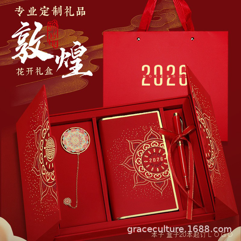 Универсальные внутренние страницы с полными горизонтальными линиями A6, китайская красная подарочная коробка Dunhuang с открыванием цветка