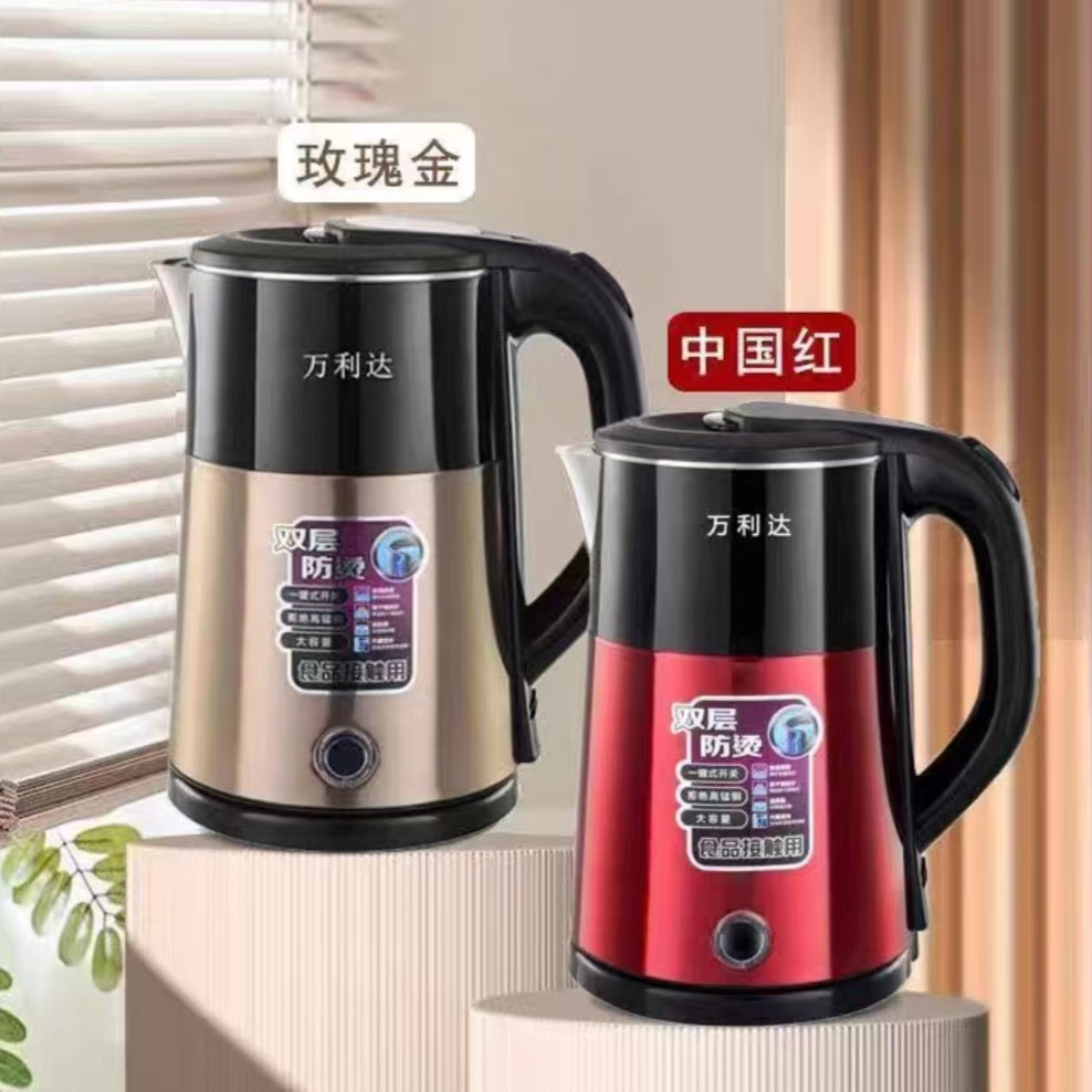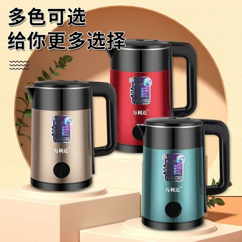 Главная страница > Электрический чайник Wanlida, цветной стальной чайник из нержавеющей стали большой емкости, двухслойный чайник с защитой от ожогов, печать логотипа