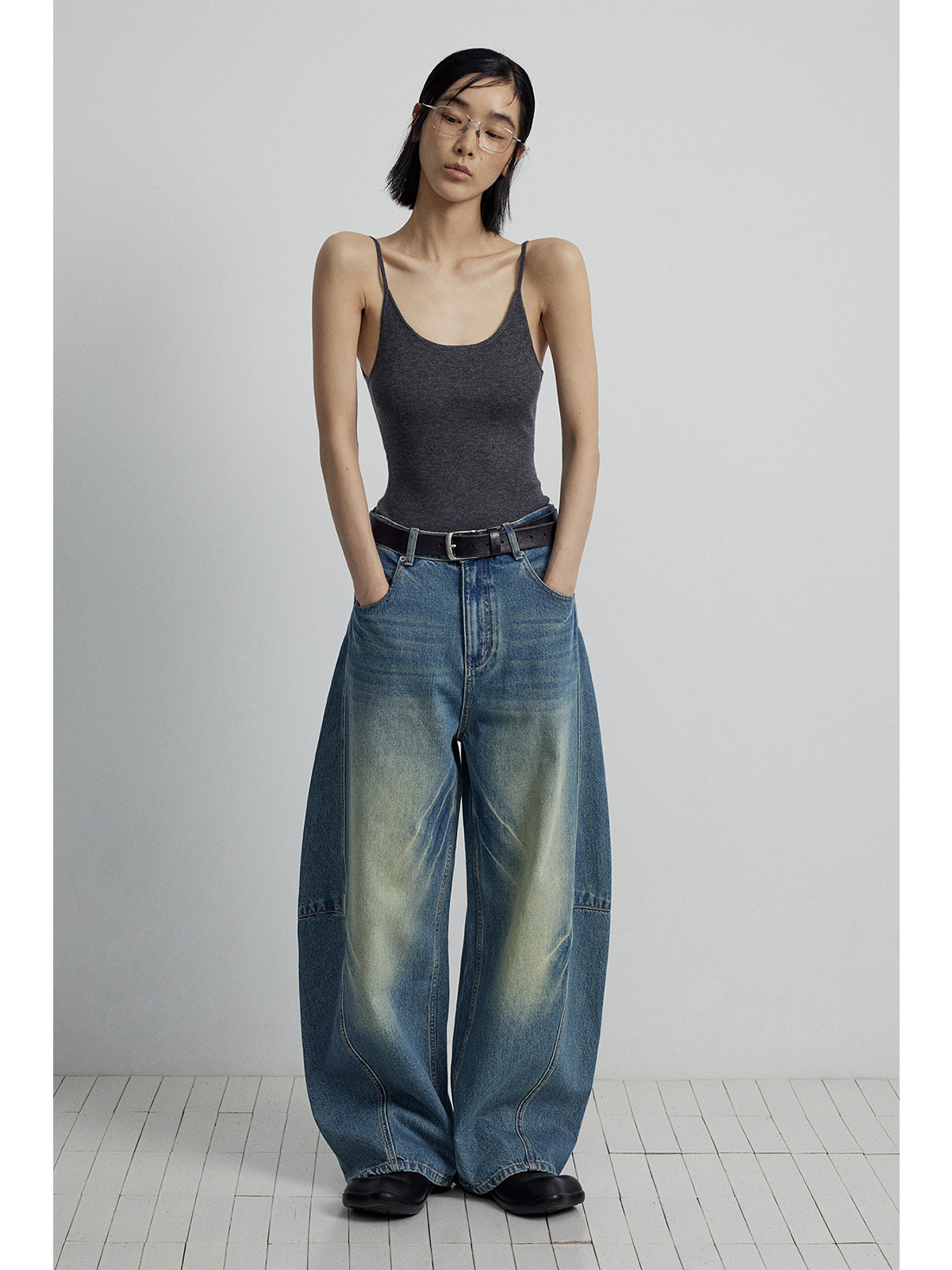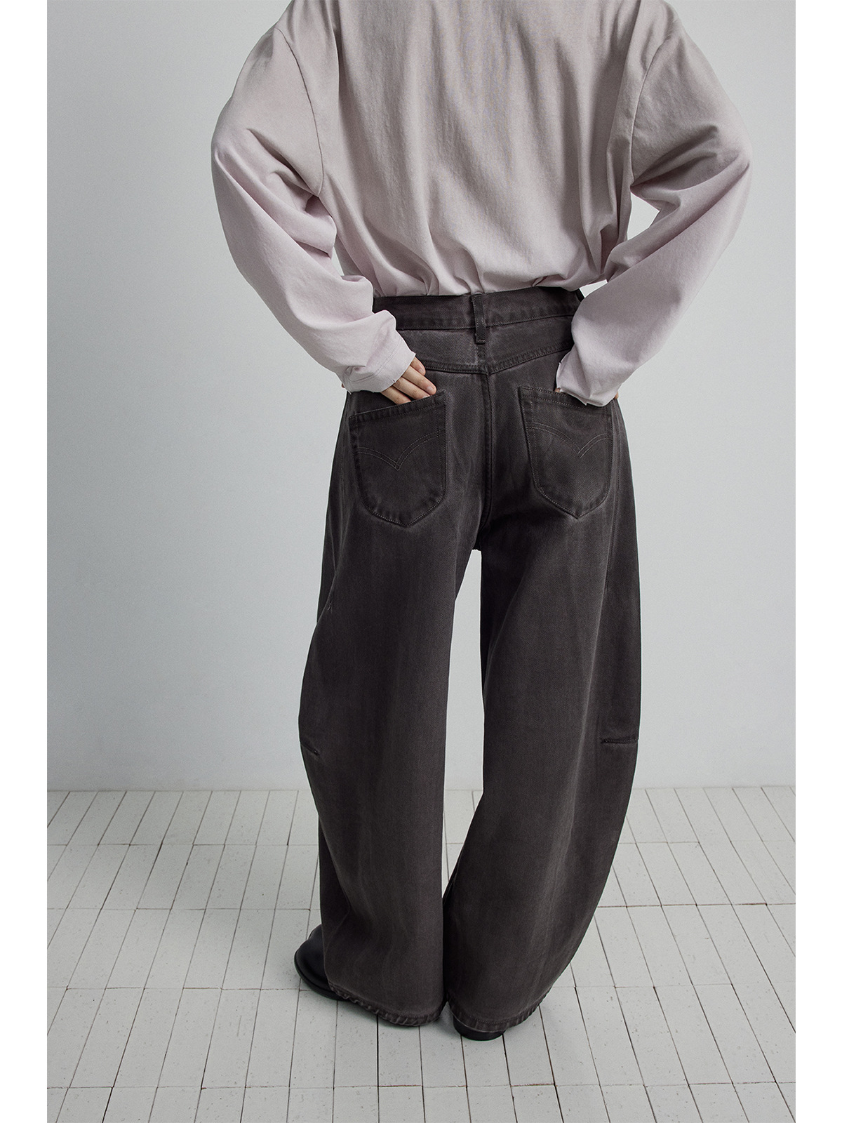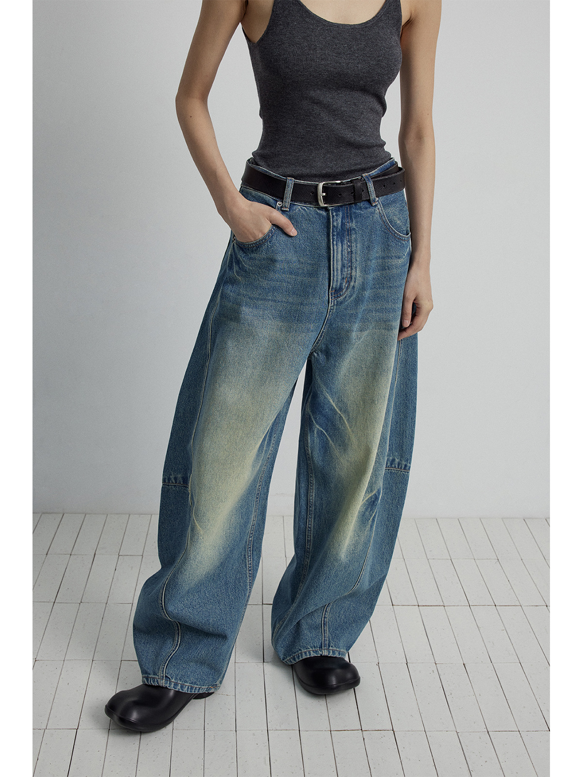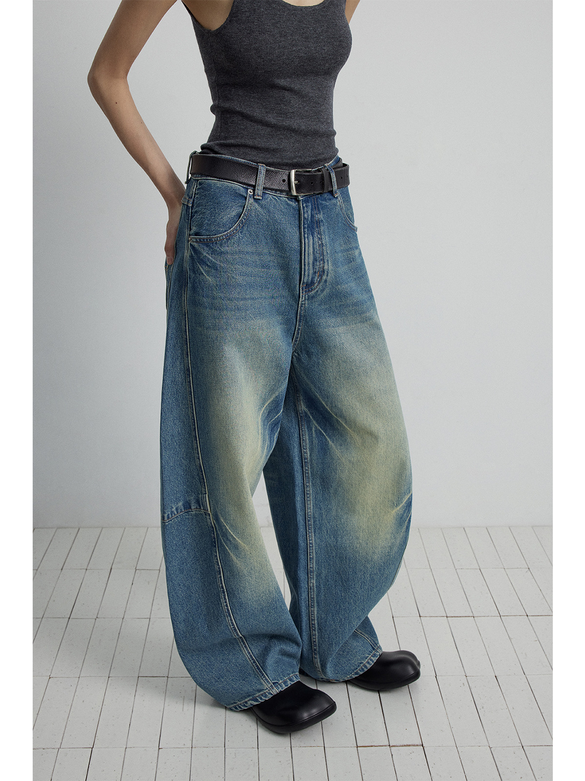 Главная страница > [Следуйте за временем] Новые кошачьи усы и царапины, стерео штаны с пошивом и сращиванием, джинсы из чистого хлопка с силуэтом банана для женщин V7082