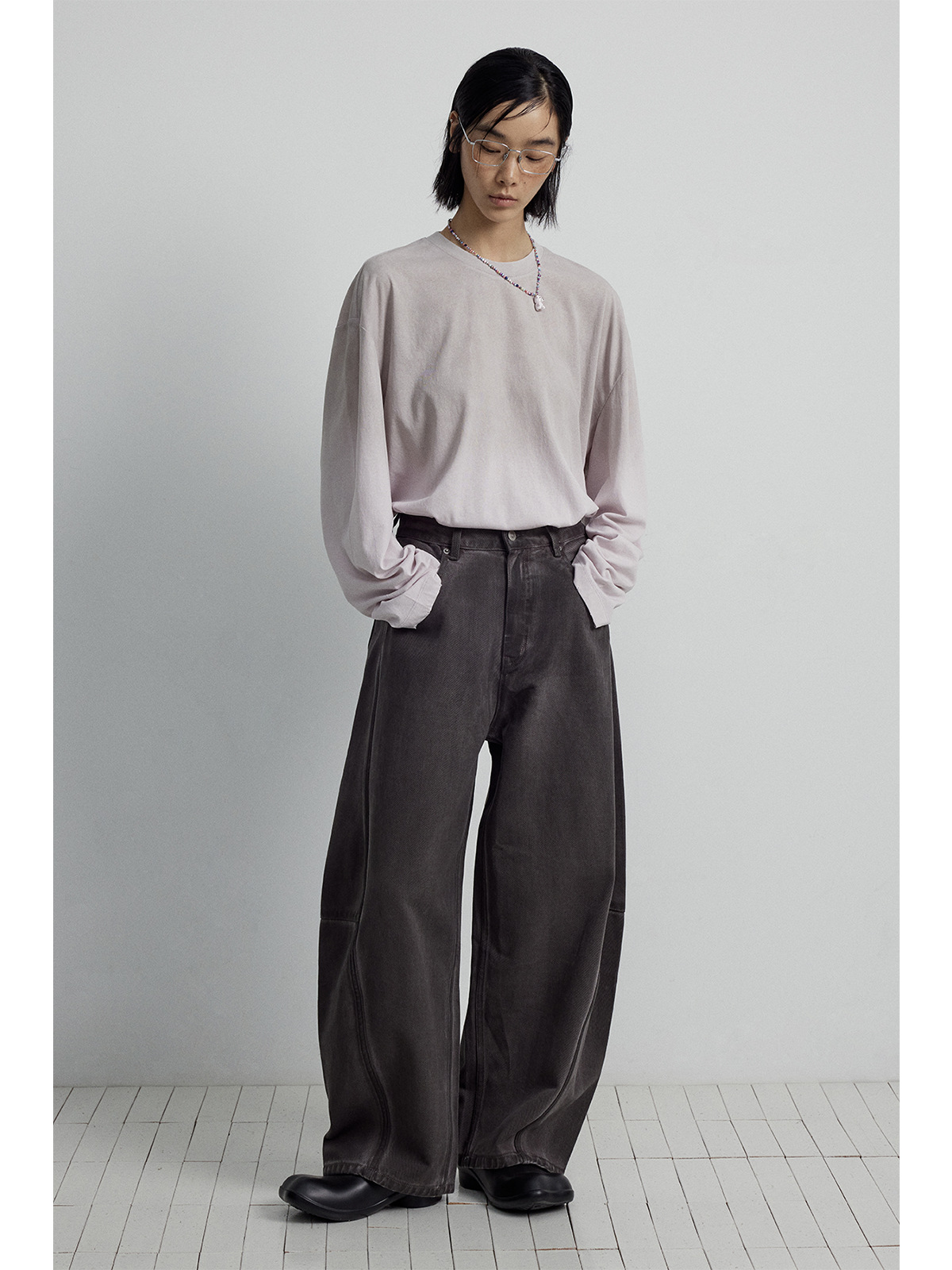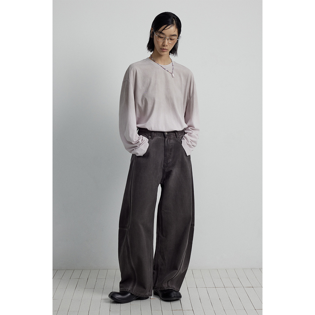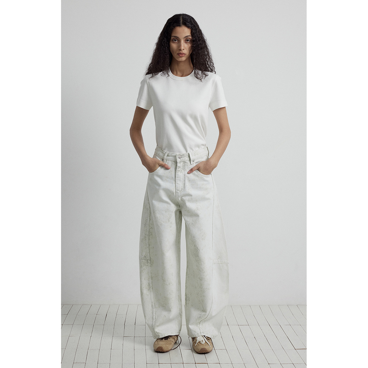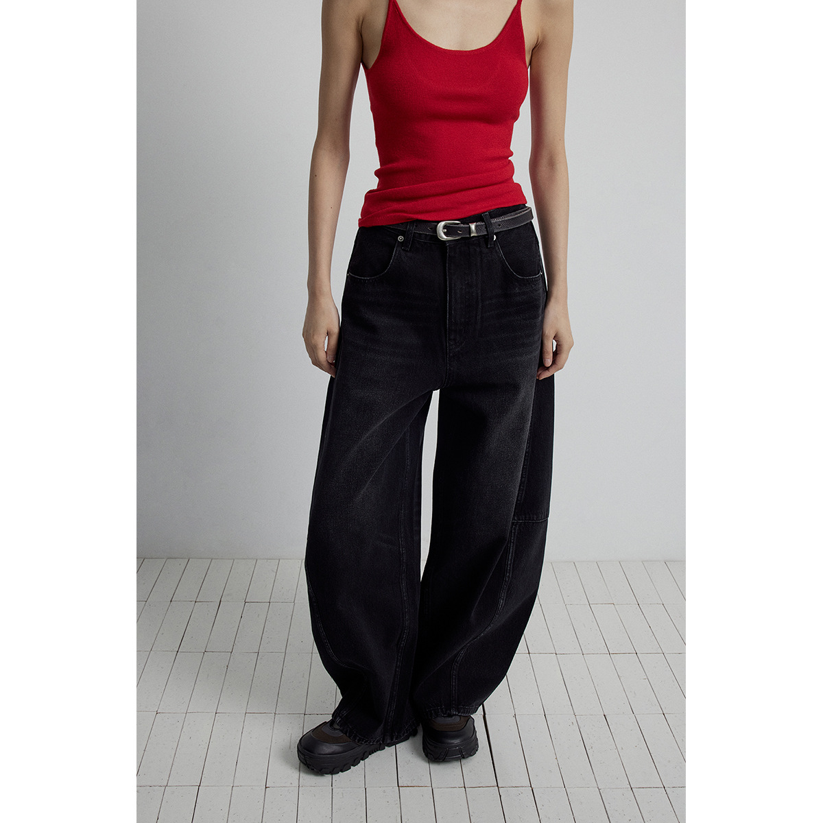Главная страница > [Следуйте за временем] Новые кошачьи усы и царапины, стерео штаны с пошивом и сращиванием, джинсы из чистого хлопка с силуэтом банана для женщин V7082