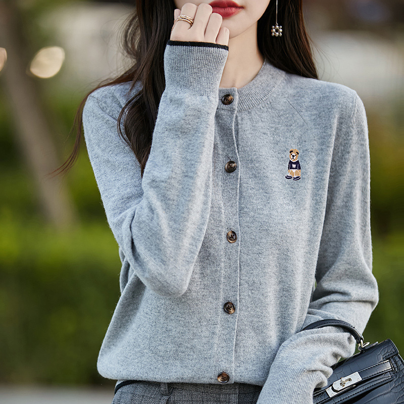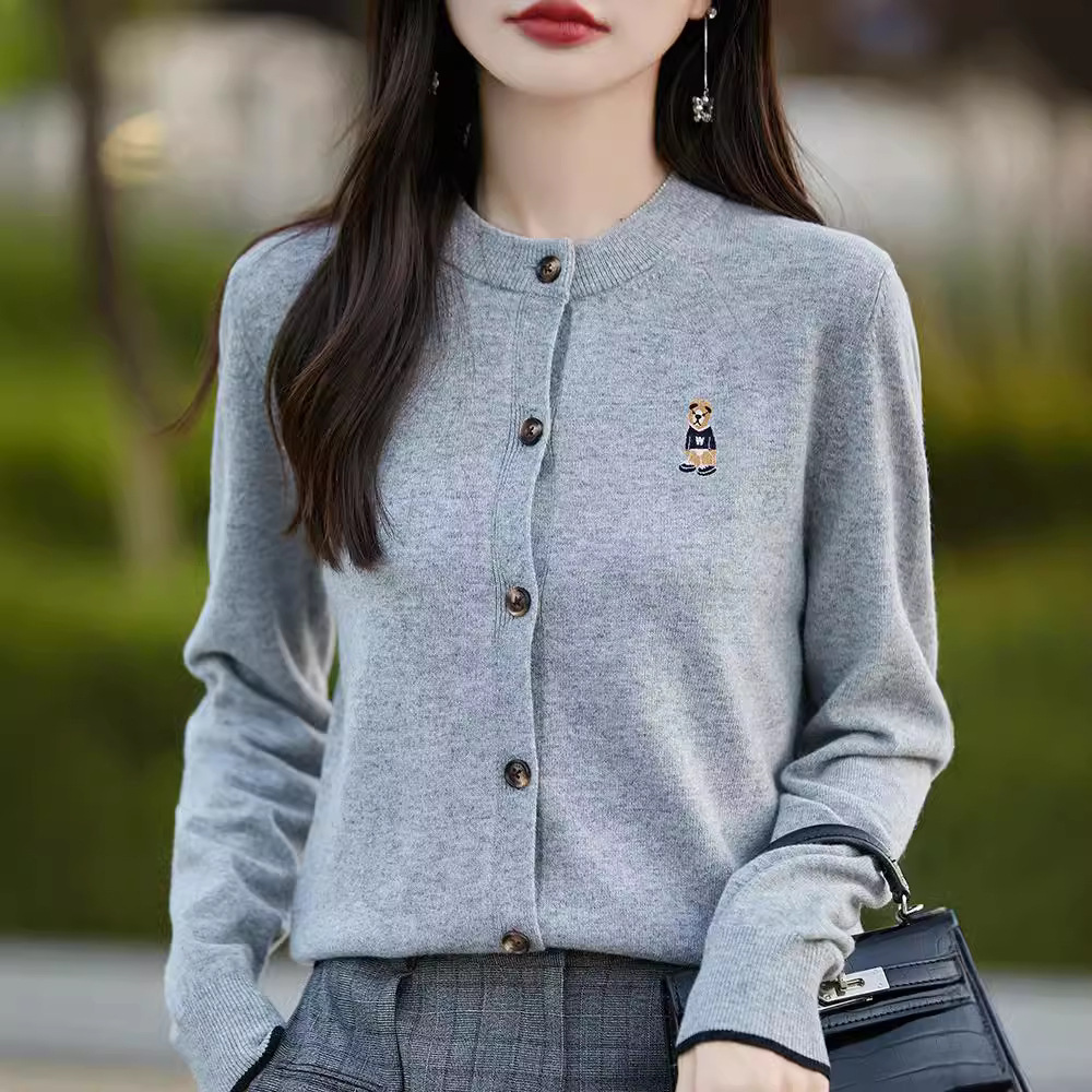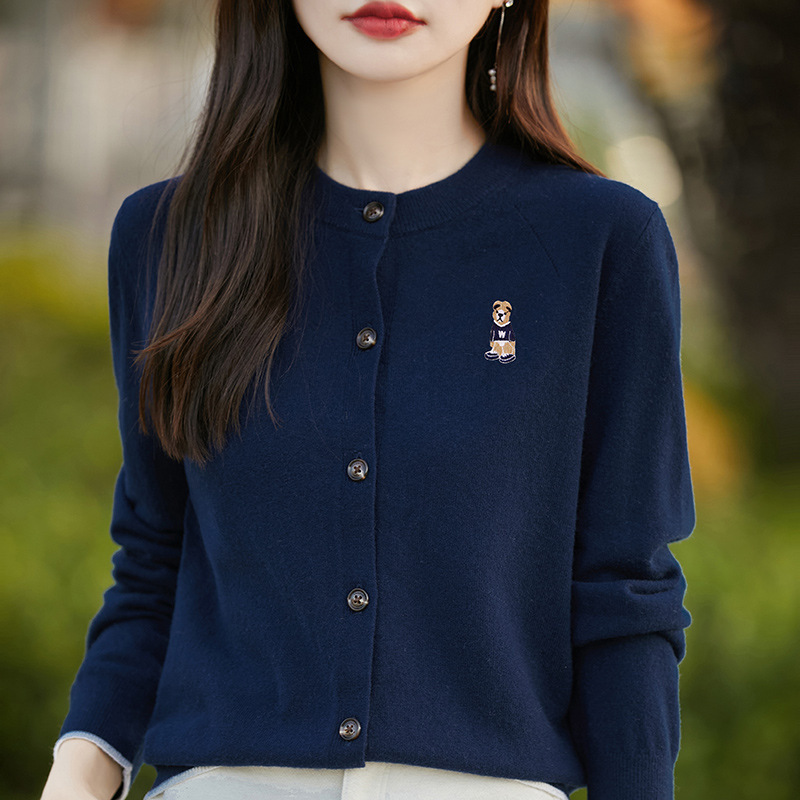 Главная страница > Оптовая продажа весенне-осенний короткий пиджак новый вязаный топ с вышивкой маленький медведь с длинными рукавами кардиган женский ленивый ветер