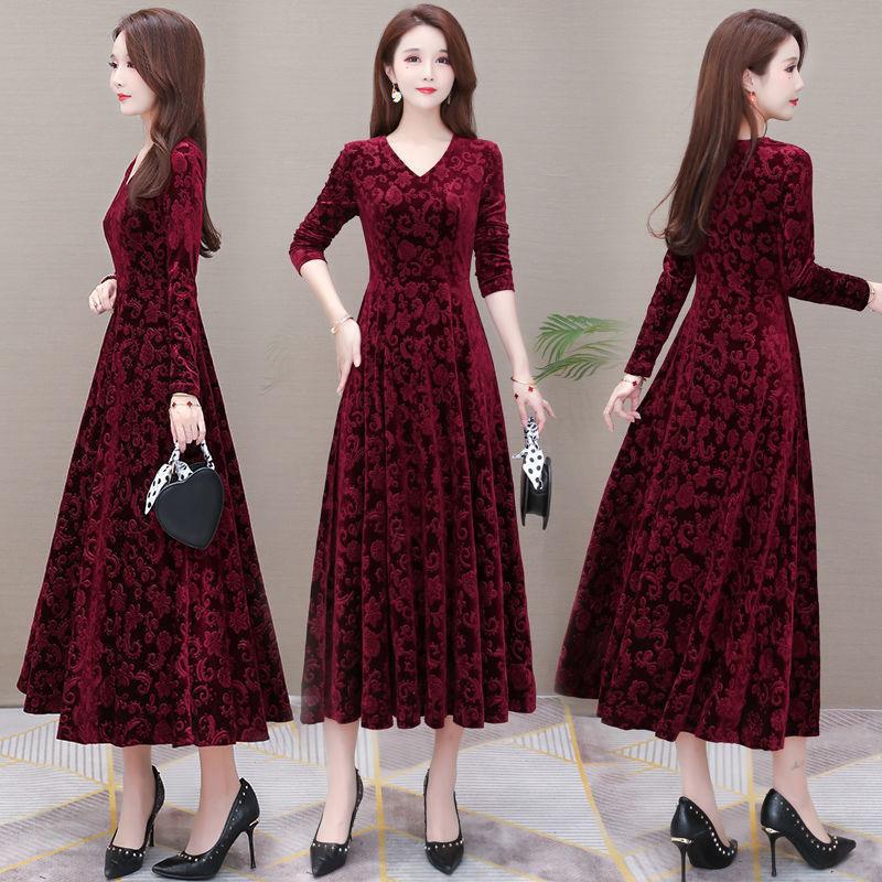 Главная страница > В наличии 2024, весенне-осенняя новая утягивающая расклешенная юбка больших размеров, женское бархатное платье с длинными рукавами, длинный стиль.