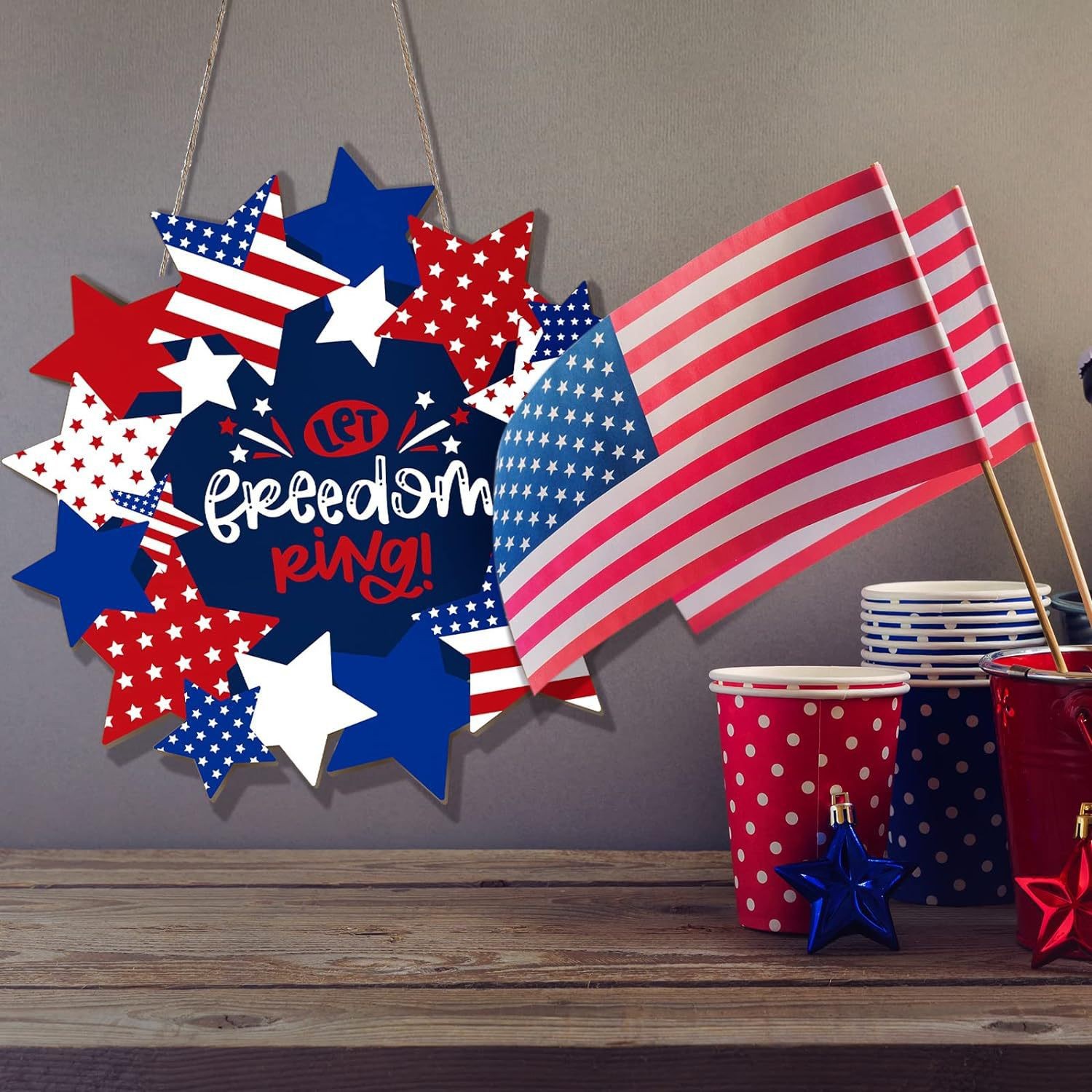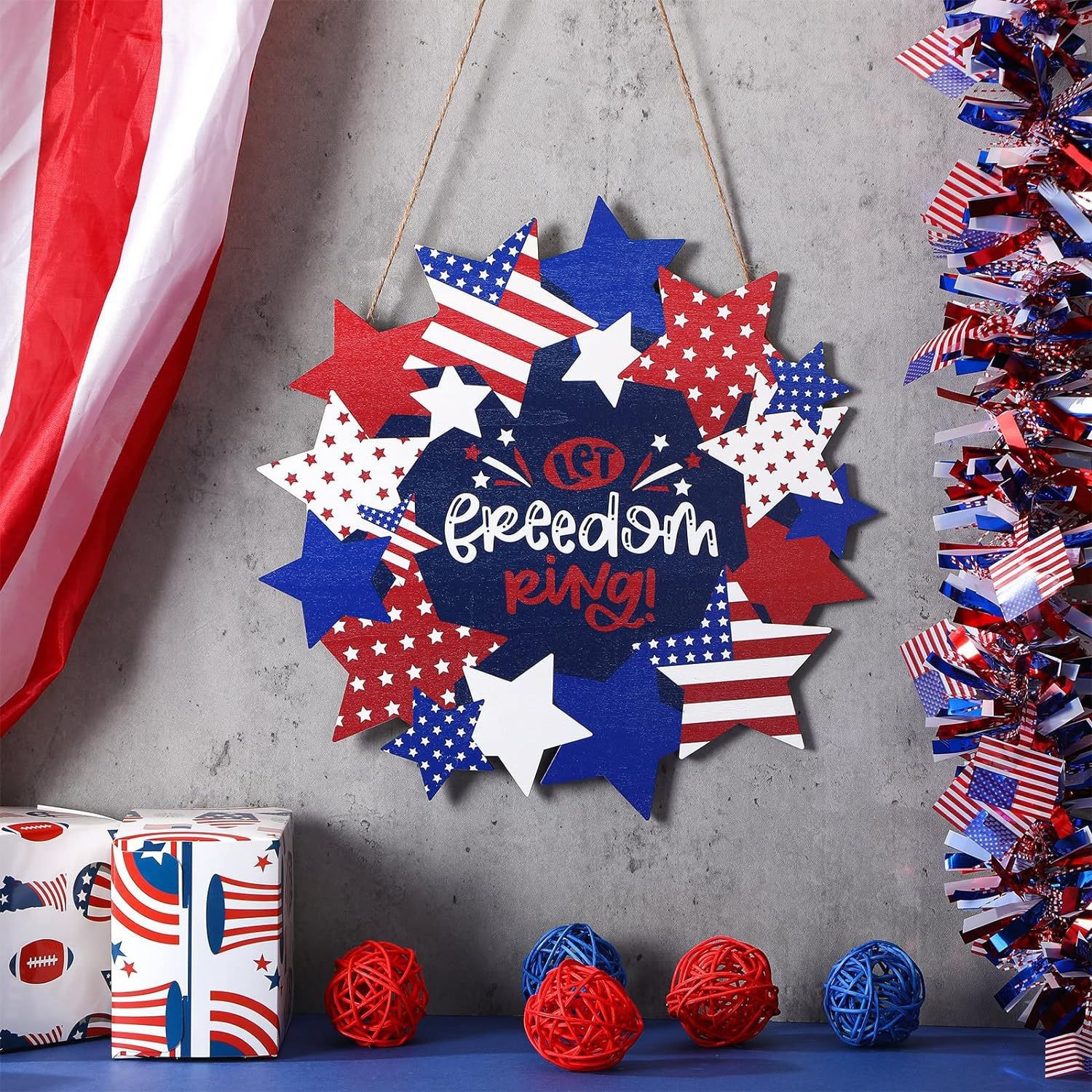 Декор для двери в виде венка на День независимости США 12inch в деревенском стиле, красно-сине-белый, деревянные поделки для американского дома