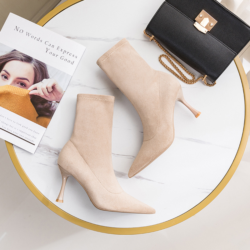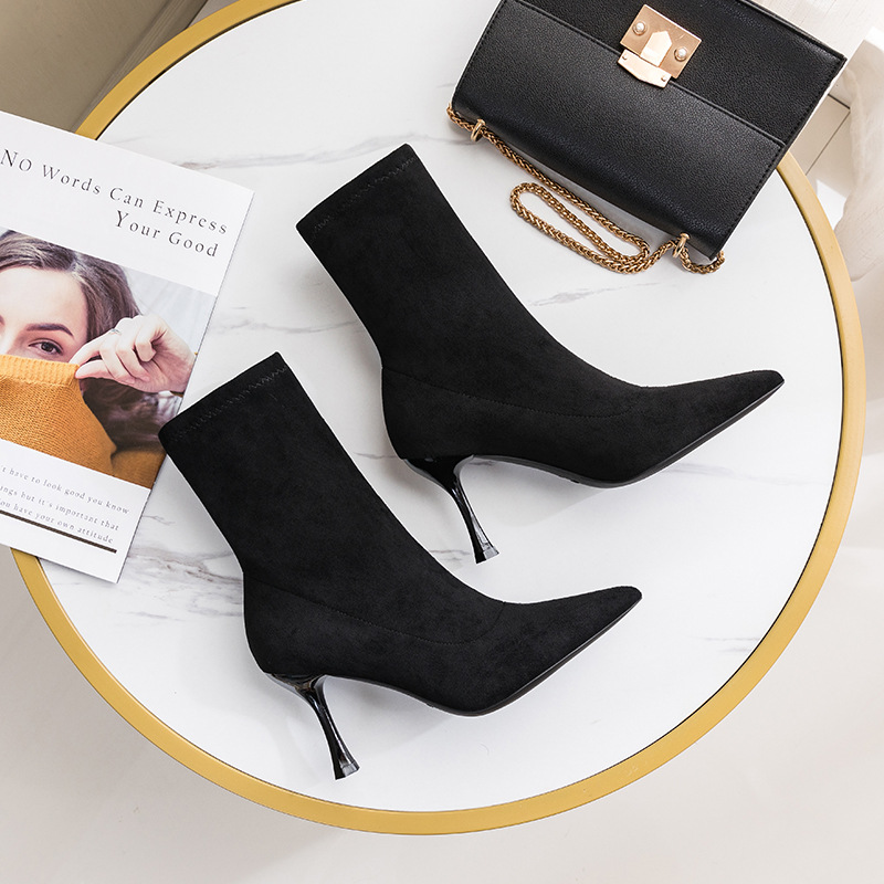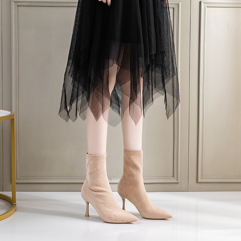 Главная страница > Элегантные женские сапоги с острым носком, новинка 2025 года, замшевые модные сапоги на шпильке в европейском и американском британском стиле, высокие сапоги на каблуке до середины икры оптом