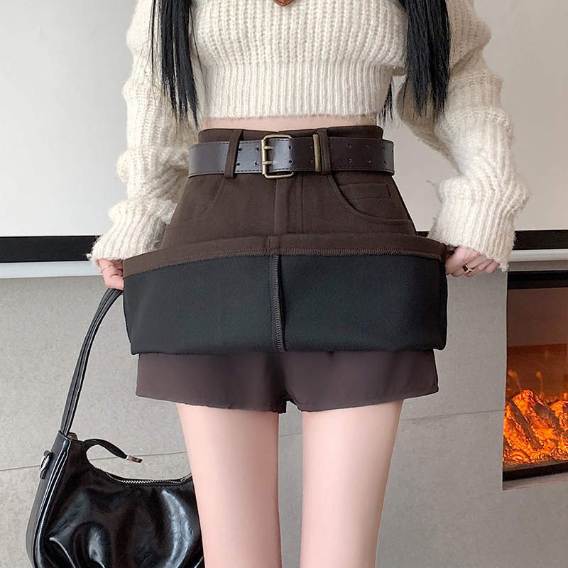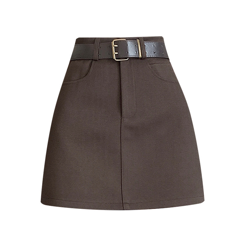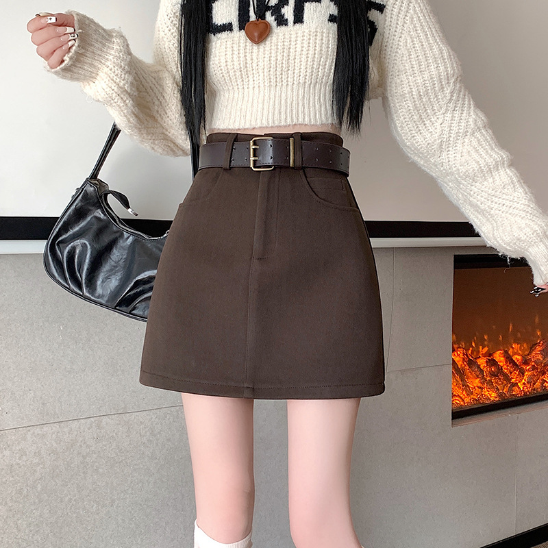 Главная страница > Женская вельветовая юбка А-силуэта с высокой талией, новинка 2024, весенняя одежда, утягивающая черная юбка на бедрах, персонализированная шерстяная юбка