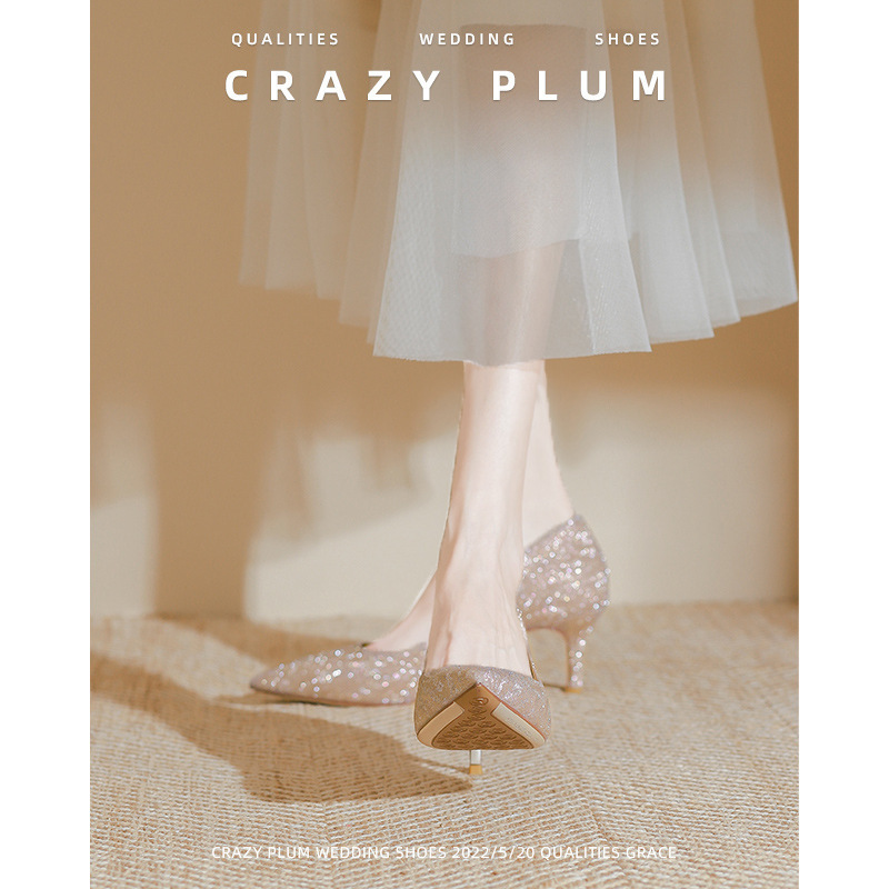 Главная страница > Женские туфли на высоком каблуке цвета шампанского, золота и серебра, новинка 2023 года, туфли на шпильке, элитные нишевые свадебные туфли Xiuhe, свадебное платье, два варианта ношения