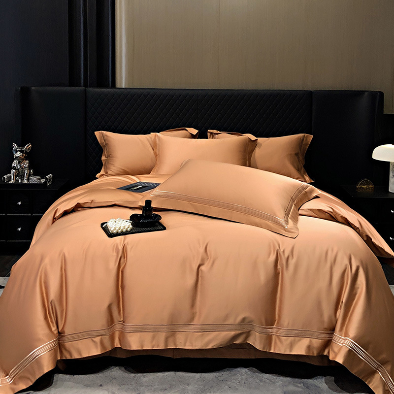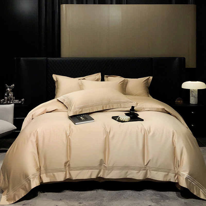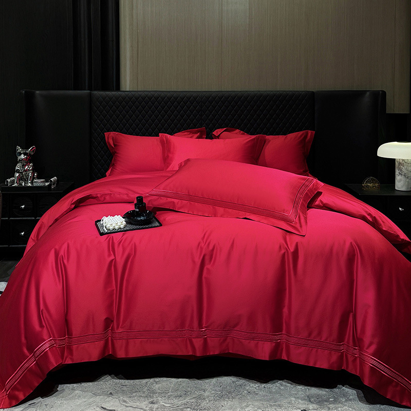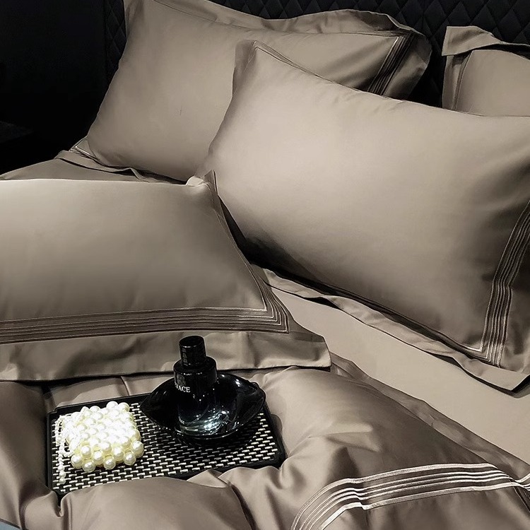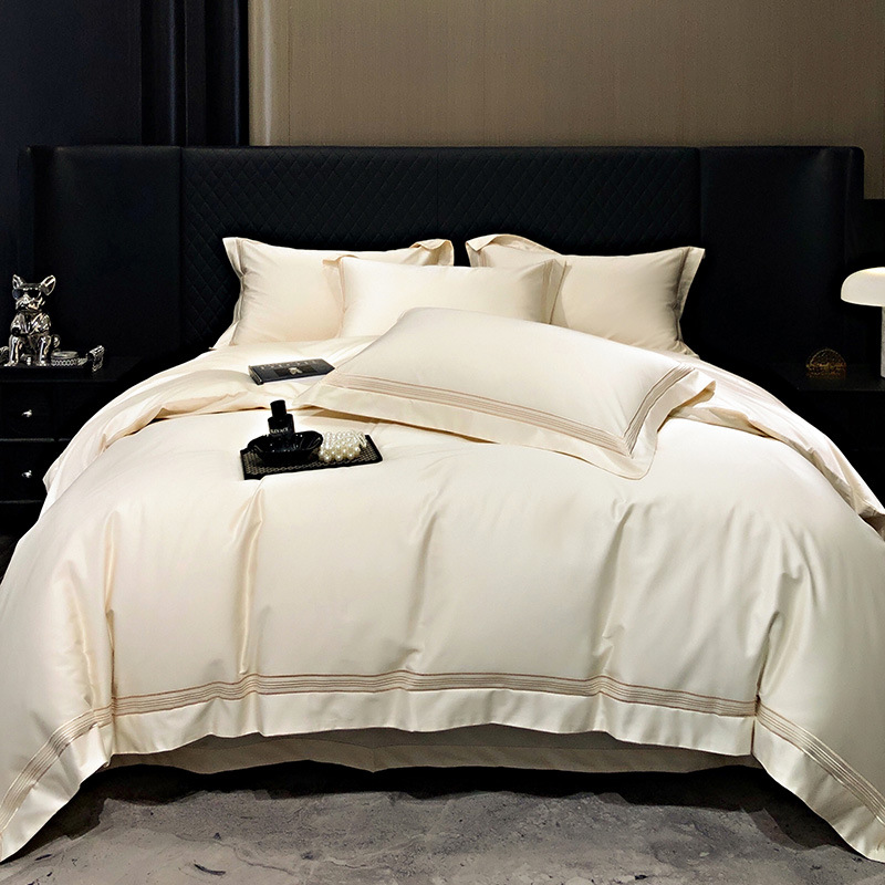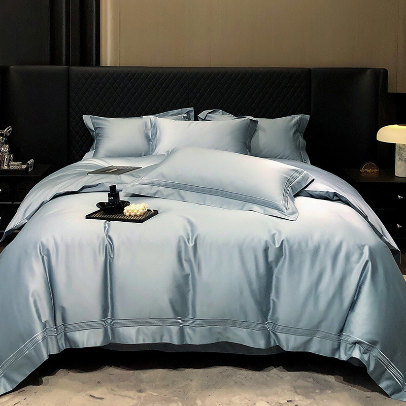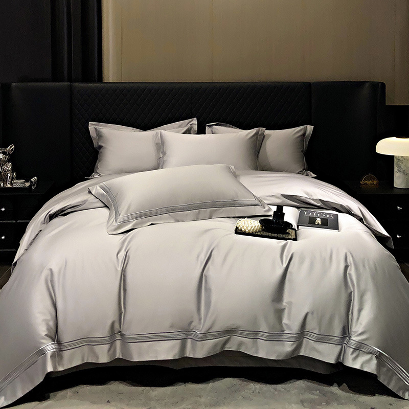 Главная страница > Простой 100s длинноволокнистый хлопковый однотонный комплект из четырех предметов, легкая Роскошная линия с вышивкой, хлопковое пододеяльник, простыня, постельное белье