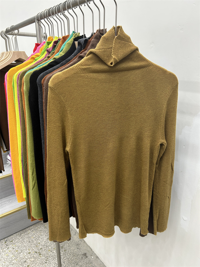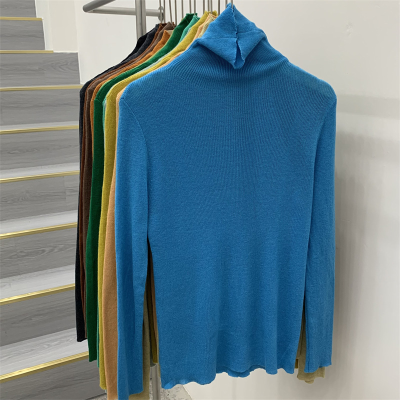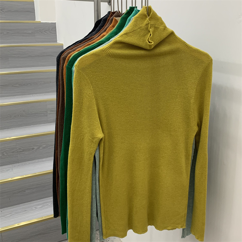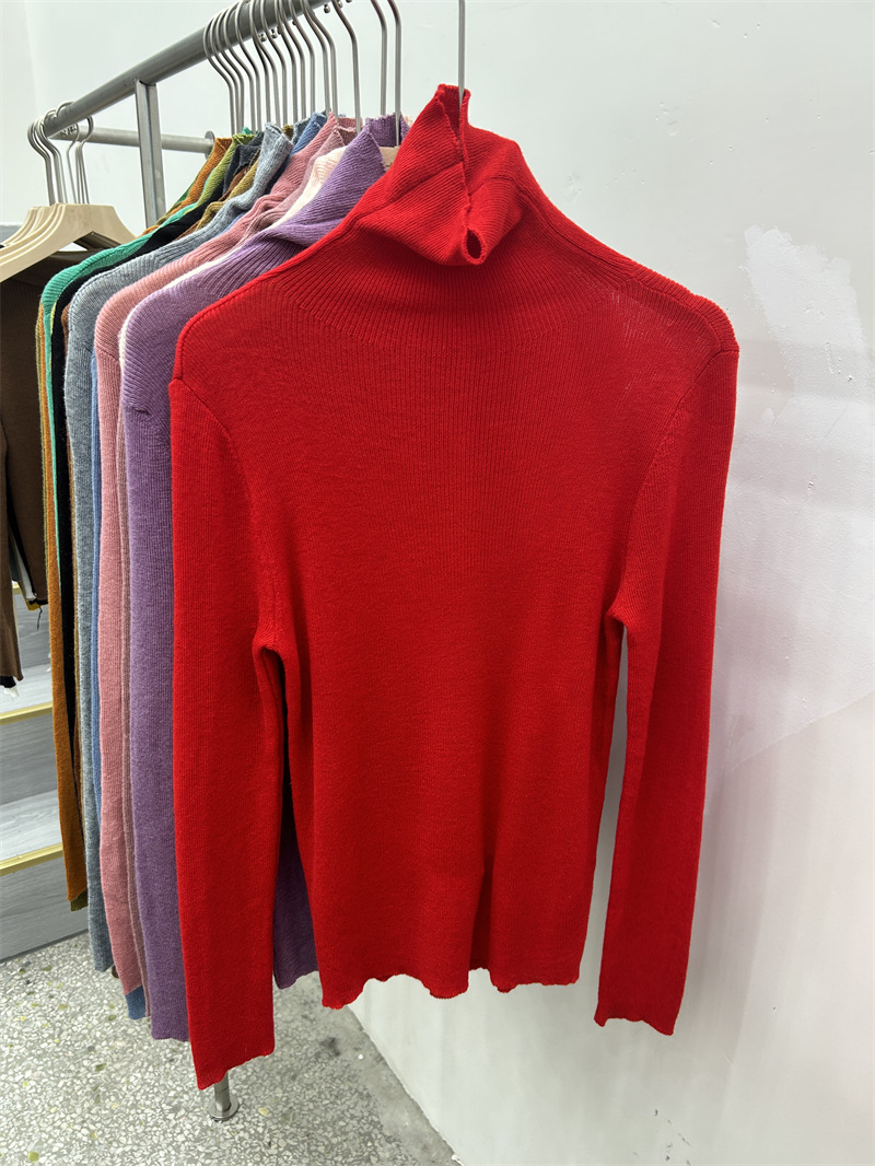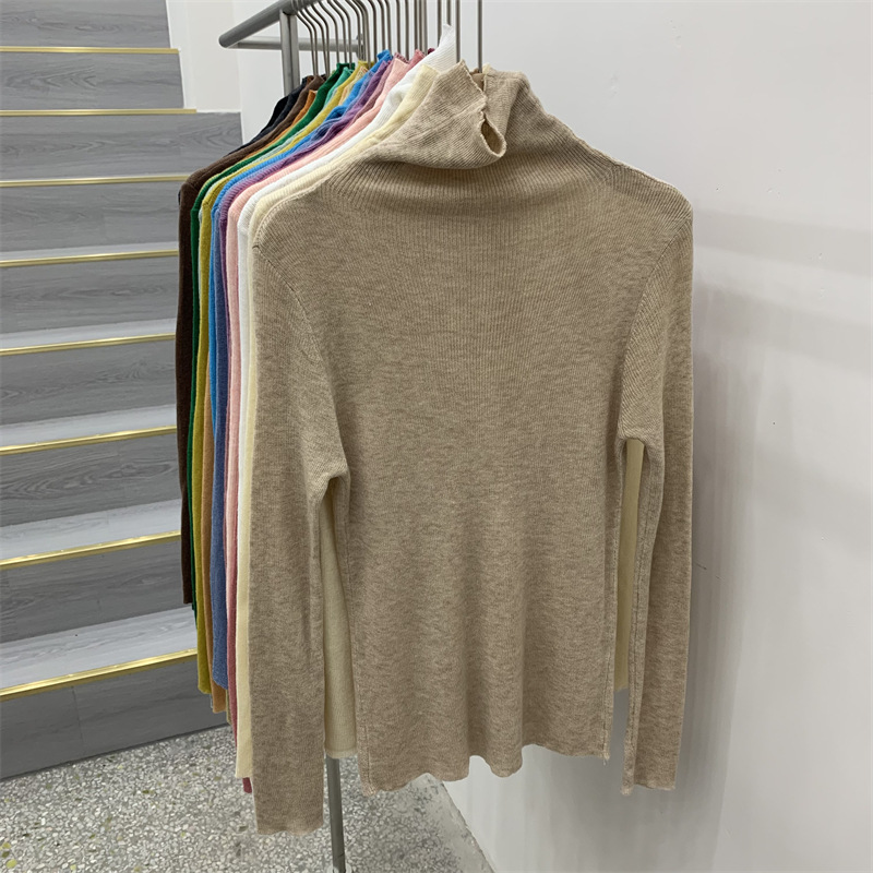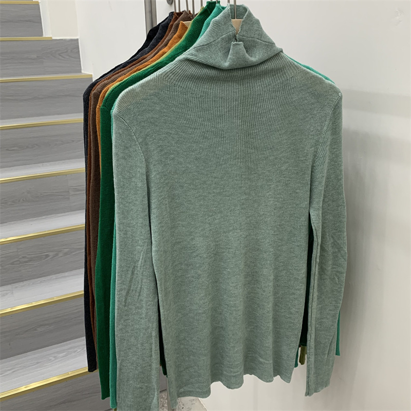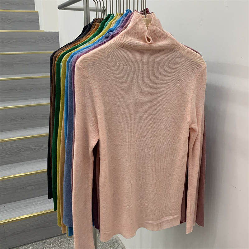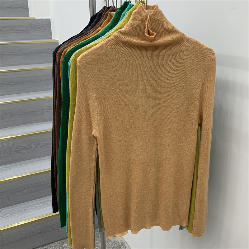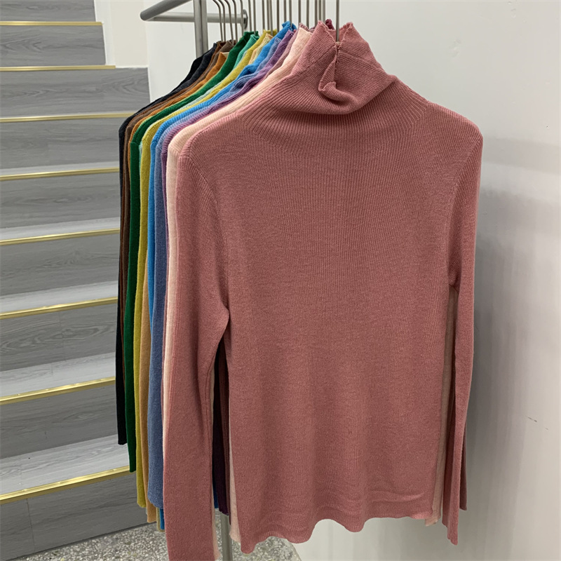Главная страница > Женская базовая футболка с высоким воротом из тонкой шерстяной ткани (шестикратное переплетение), новая осенняя однотонная универсальная облегающая футболка с длинным рукавом.