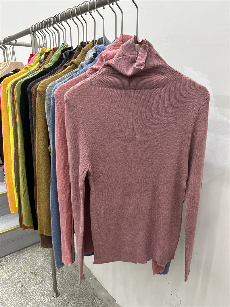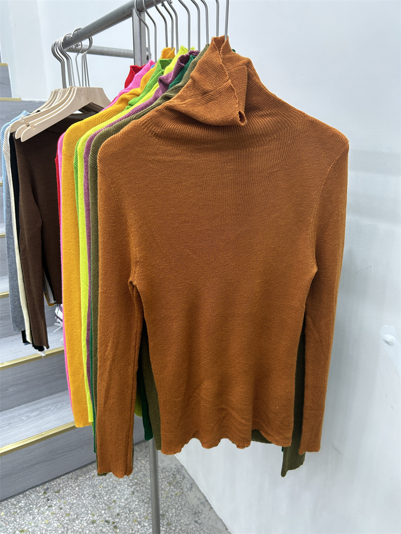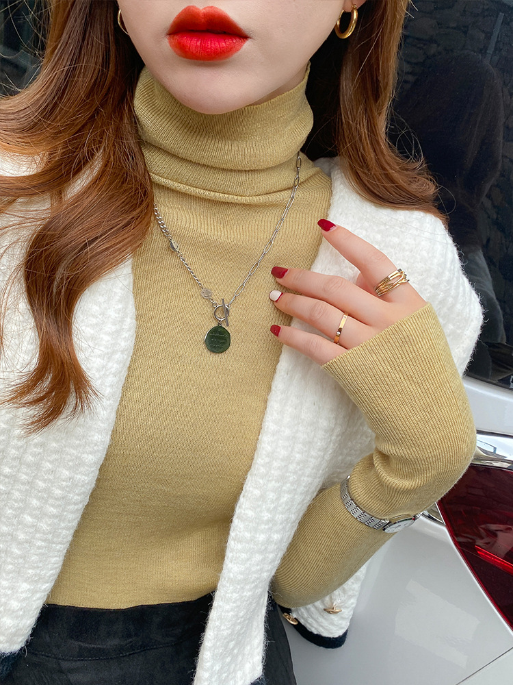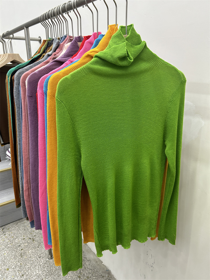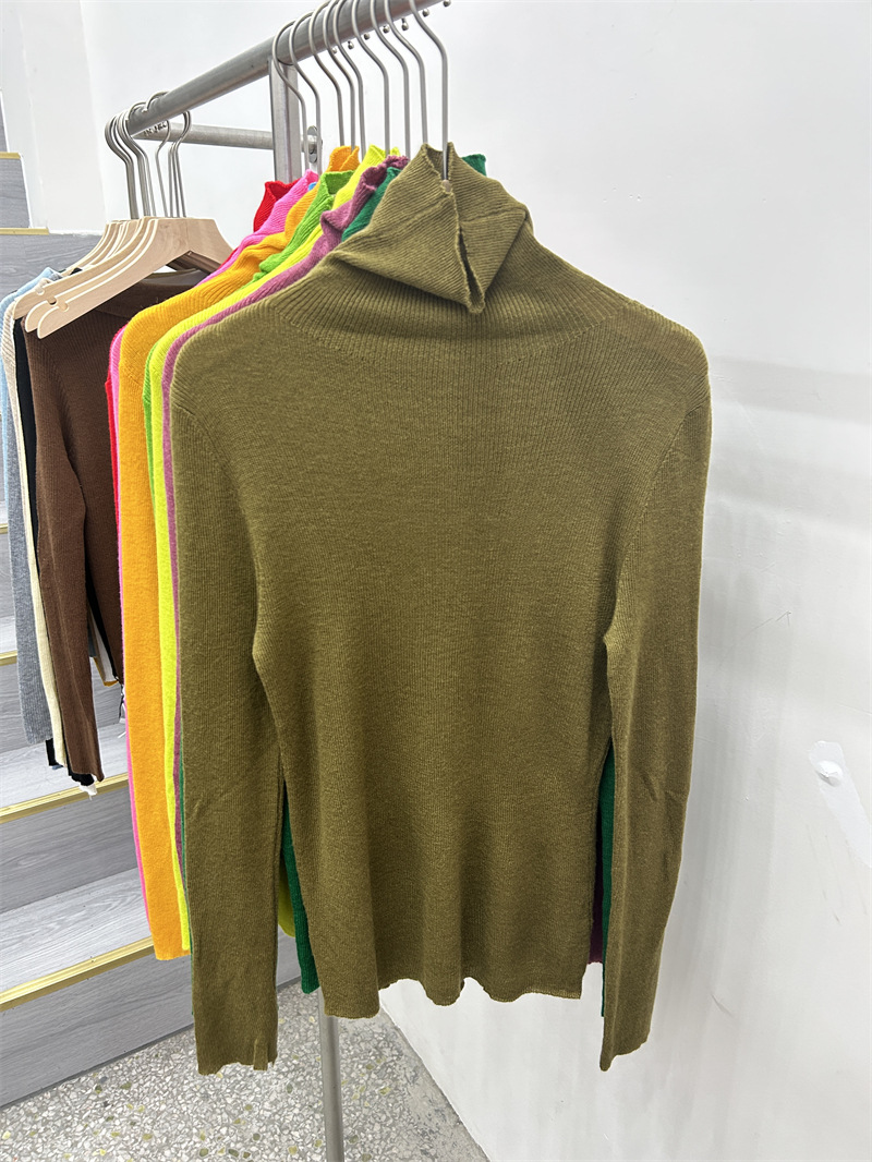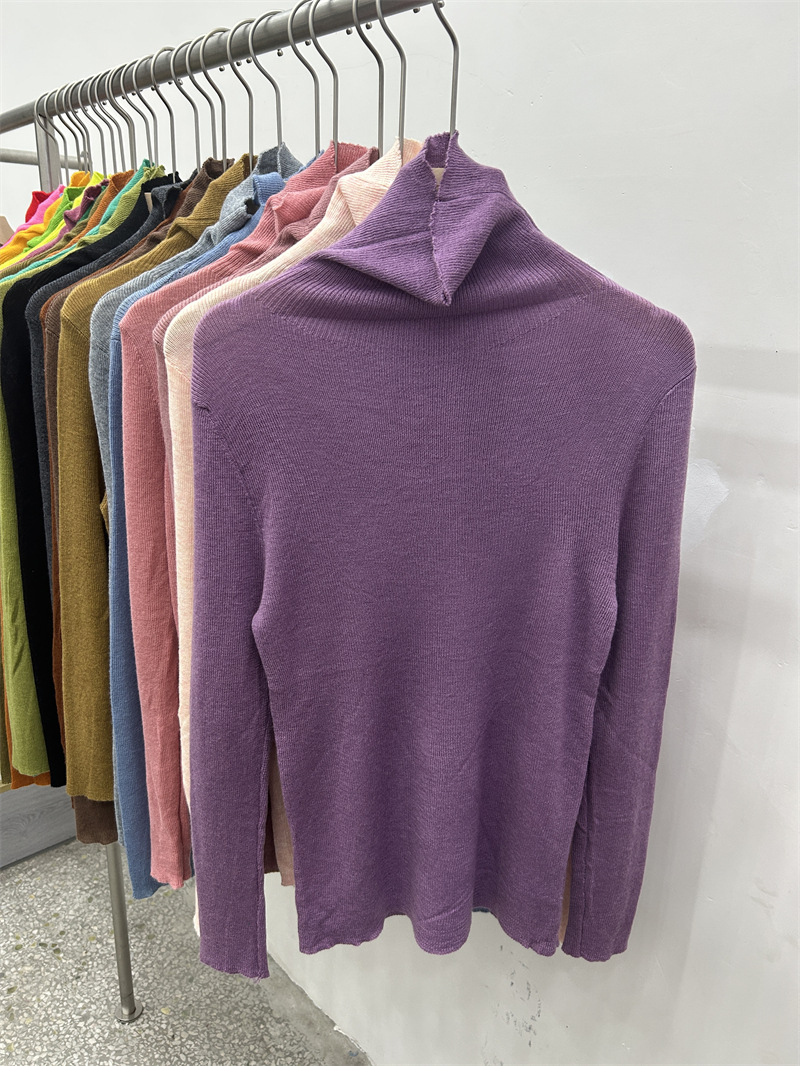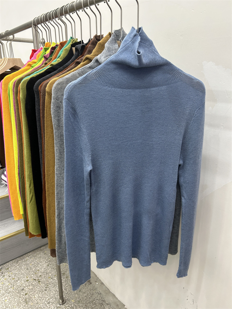 Главная страница > Женская базовая футболка с высоким воротом из тонкой шерстяной ткани (шестикратное переплетение), новая осенняя однотонная универсальная облегающая футболка с длинным рукавом.
