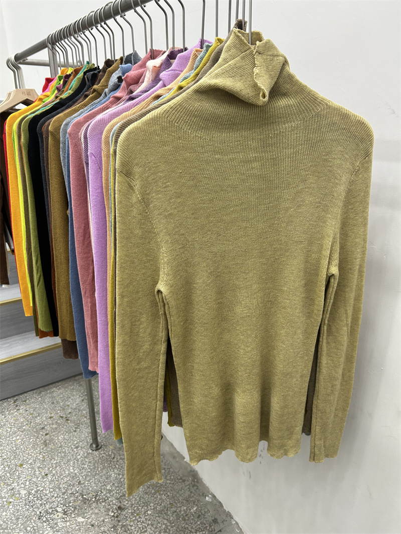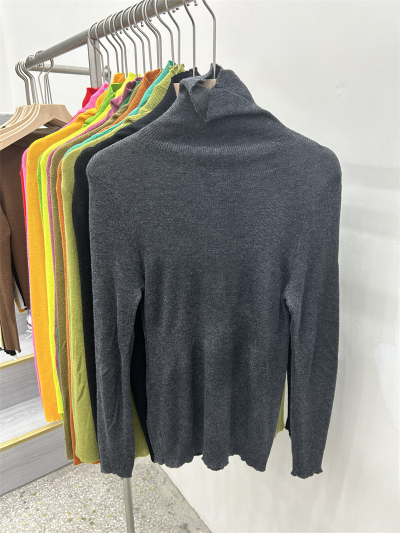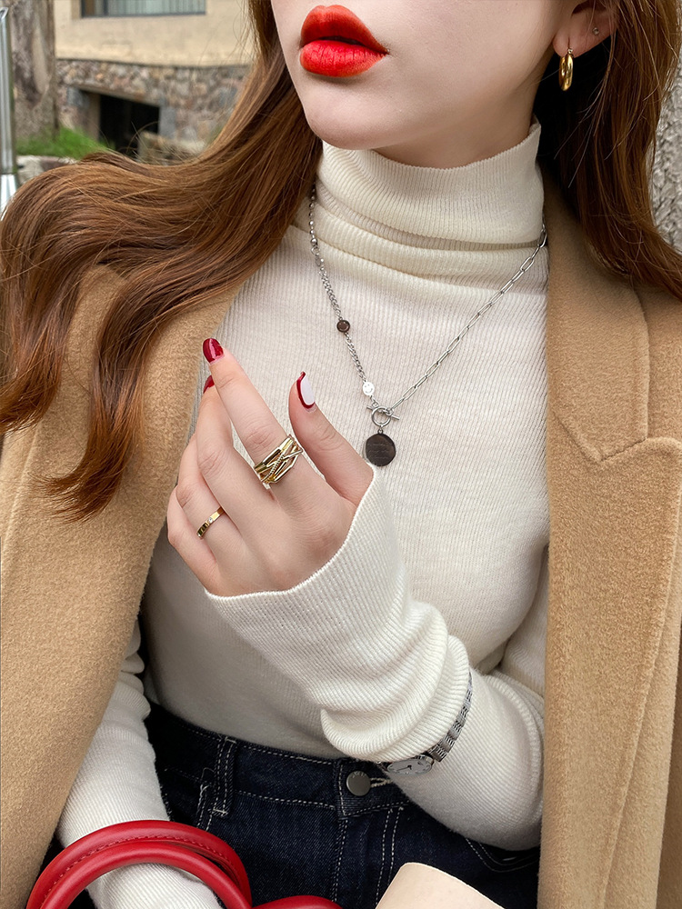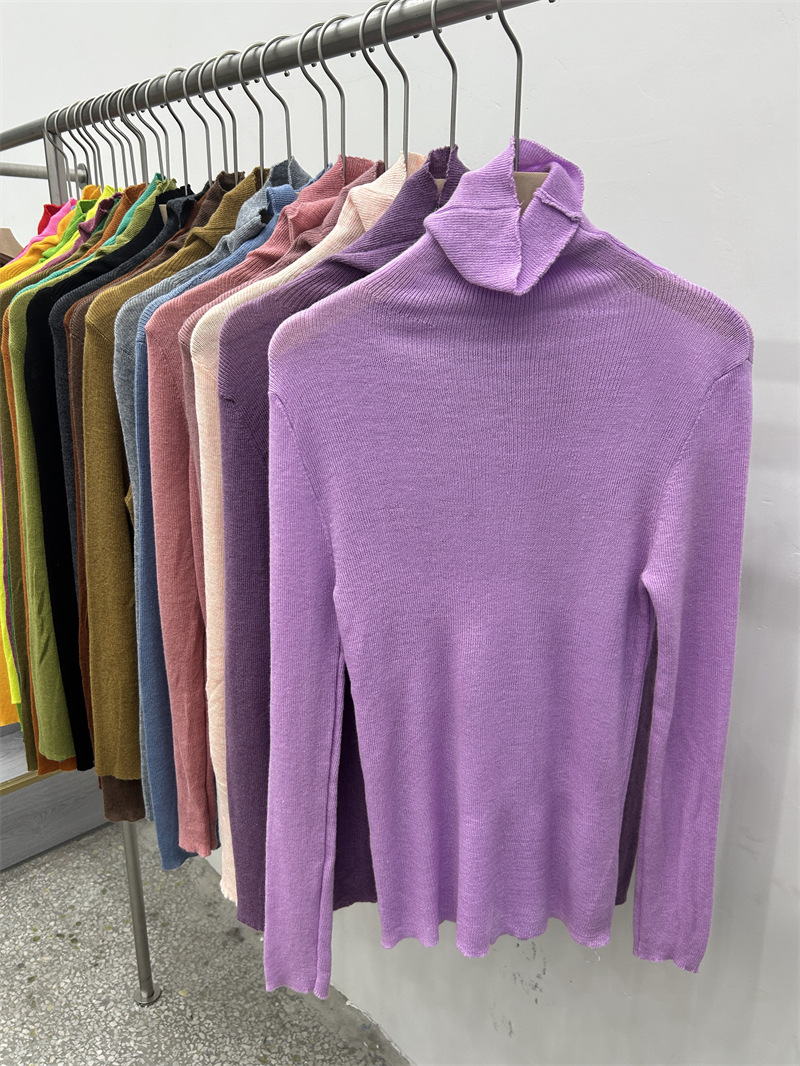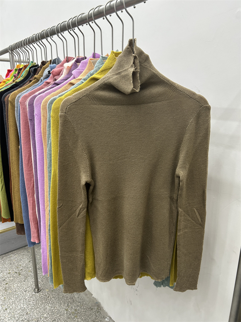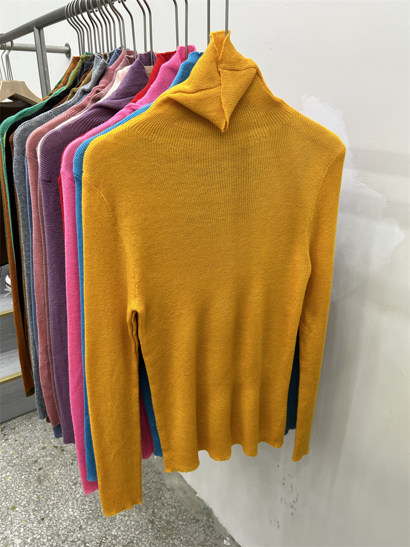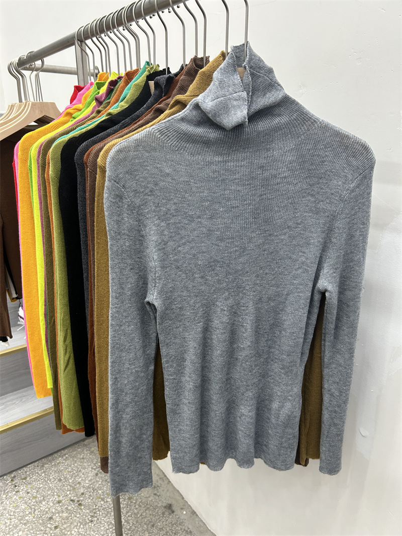 Главная страница > Женская базовая футболка с высоким воротом из тонкой шерстяной ткани (шестикратное переплетение), новая осенняя однотонная универсальная облегающая футболка с длинным рукавом.