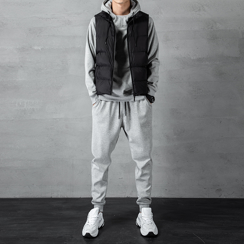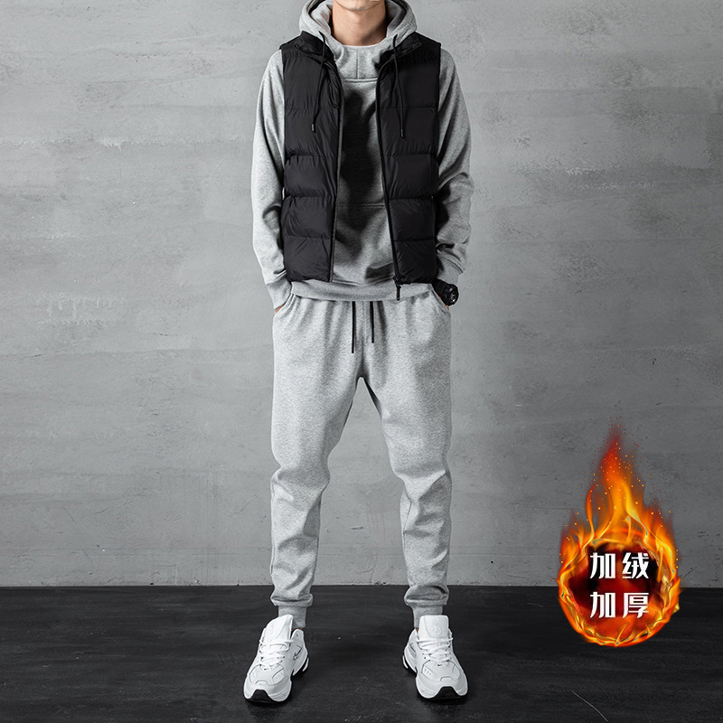 Главная страница > Свитер с капюшоном для мужчин осень и зима новая корейская версия плюшевого размера толстый кардиган жилет с набором из трех частей
