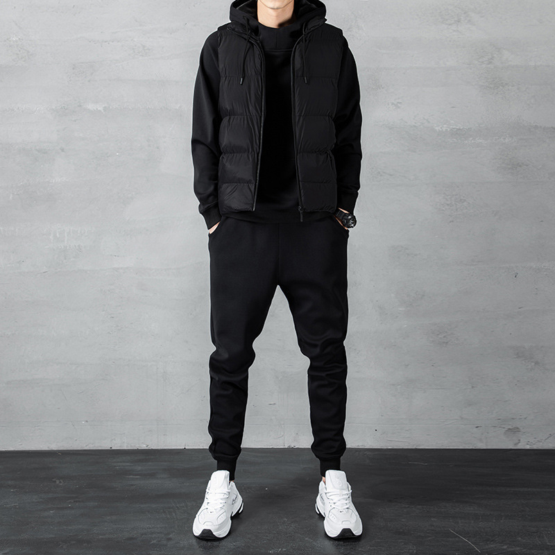 [Тонкий набор из трех частей] свитер с капюшоном-черный