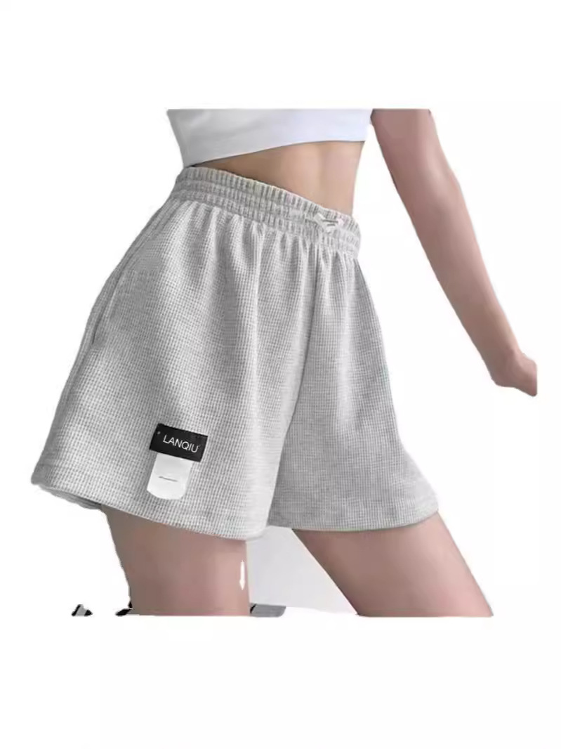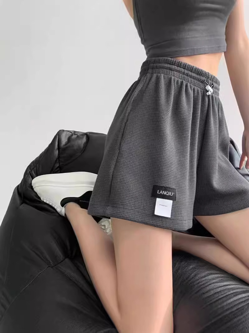Вафли шорты свободные спортивные шорты женские эластические талии широкие ноги шорты повседневные тонкие высокие талии прямой дом