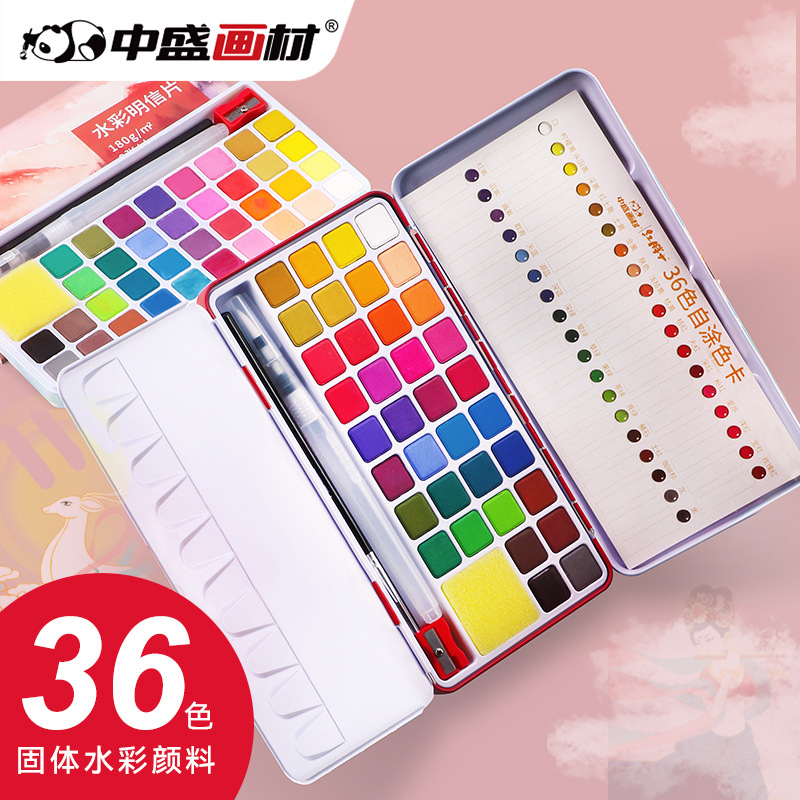 Главная страница > Zhongsheng материал для рисования 36 цветов сплошной акварельный костюм для рисования начинающих детей портативная Живопись Ручная роспись кистью