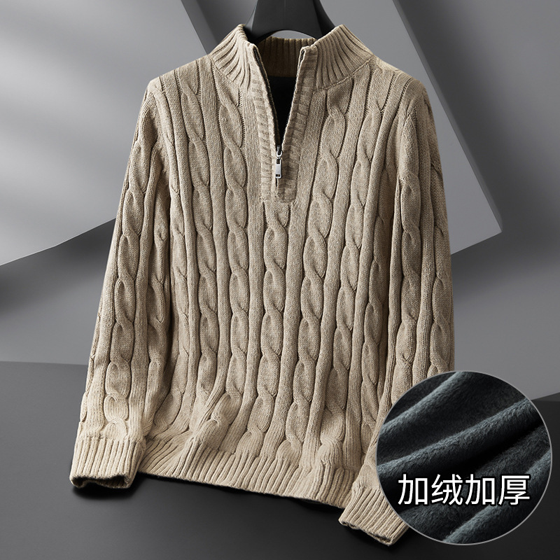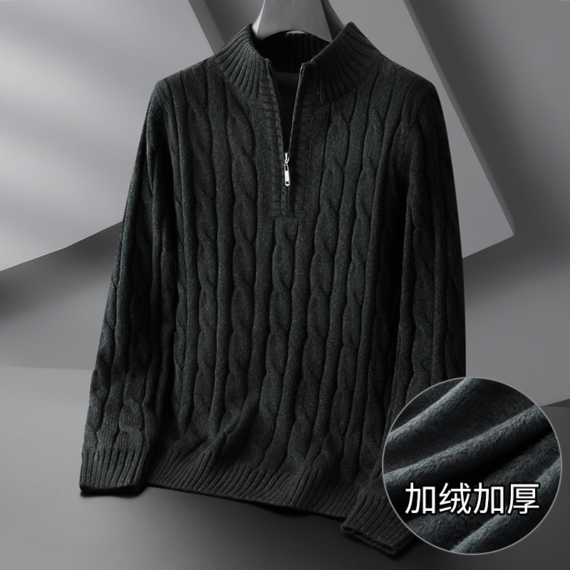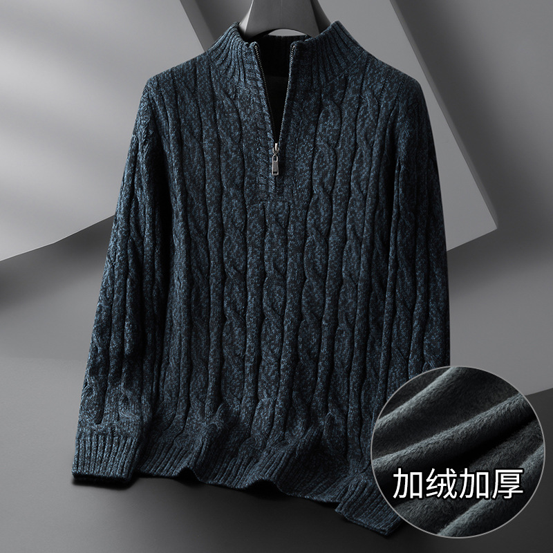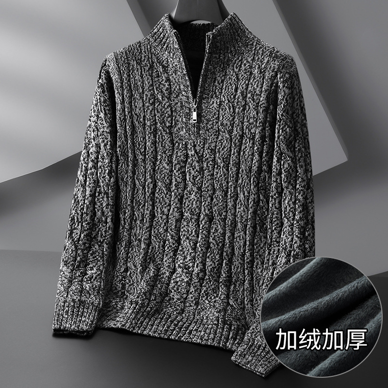 Главная страница > 2023 Новый мужской свитер больших размеров на молнии с высоким воротом, толстый свитер на флисовой подкладке, пуловер, нижняя рубашка