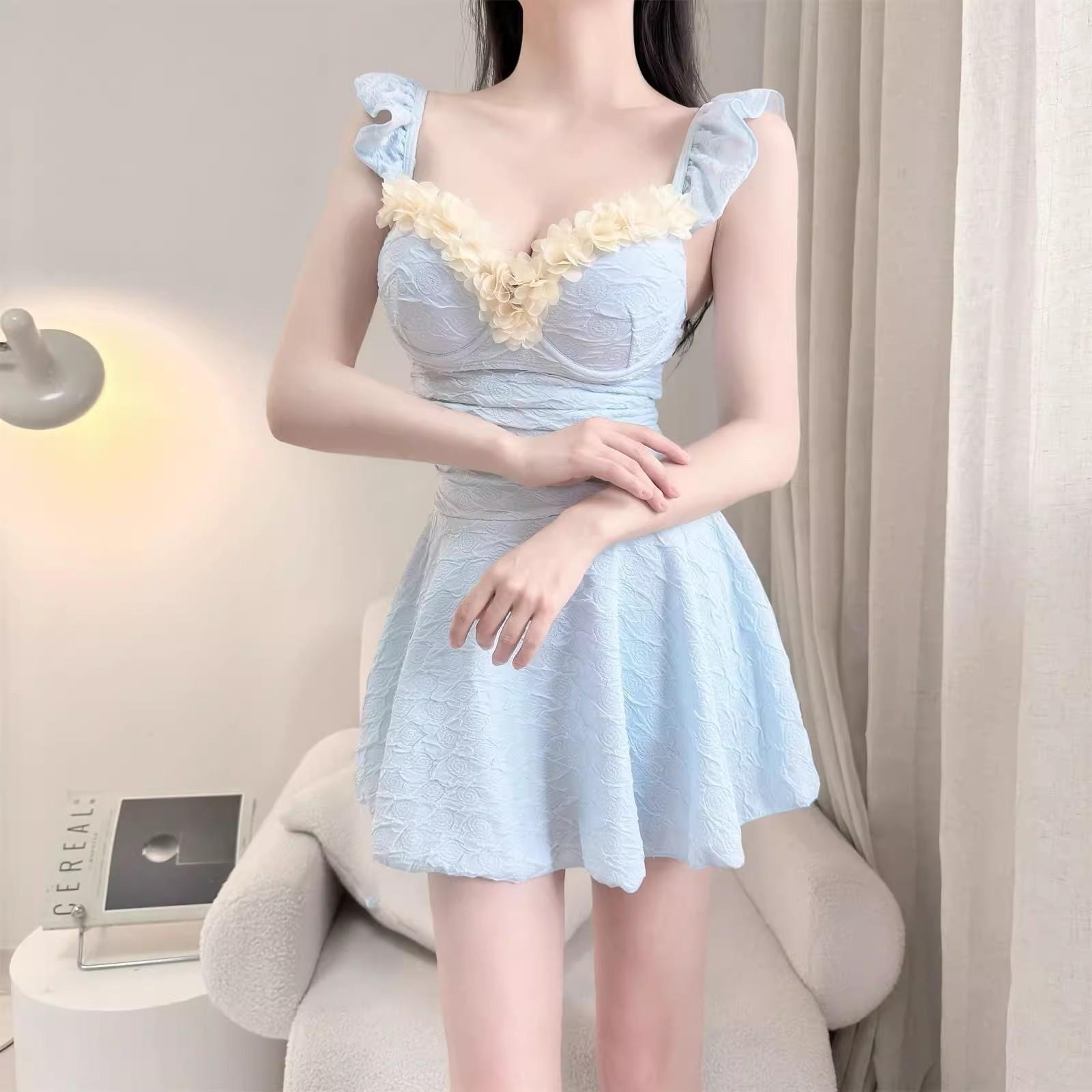 2025 новый цельный купальник молочно-голубого цвета с рюшами, консервативный, чистое желание скрыть тело и утонченный купальник с эффектом пуш-ап для отпуска для женщин