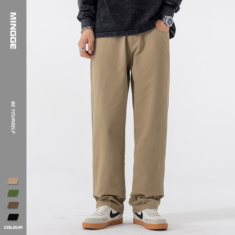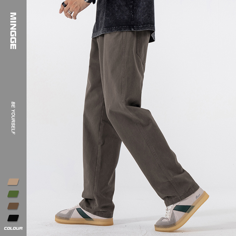 Mingge | Модные брендовые хлопковые прямые повседневные брюки в японском стиле, мужские свободные широкие однотонные простые универсальные брюки