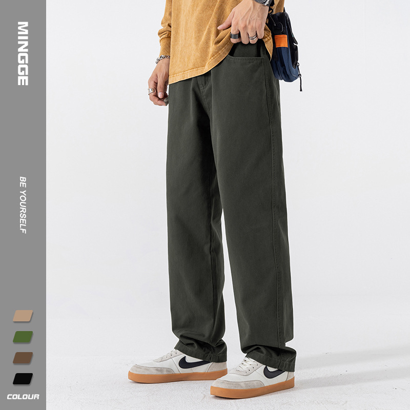 Главная страница > Mingge | Модные брендовые хлопковые прямые повседневные брюки в японском стиле, мужские свободные широкие однотонные простые универсальные брюки
