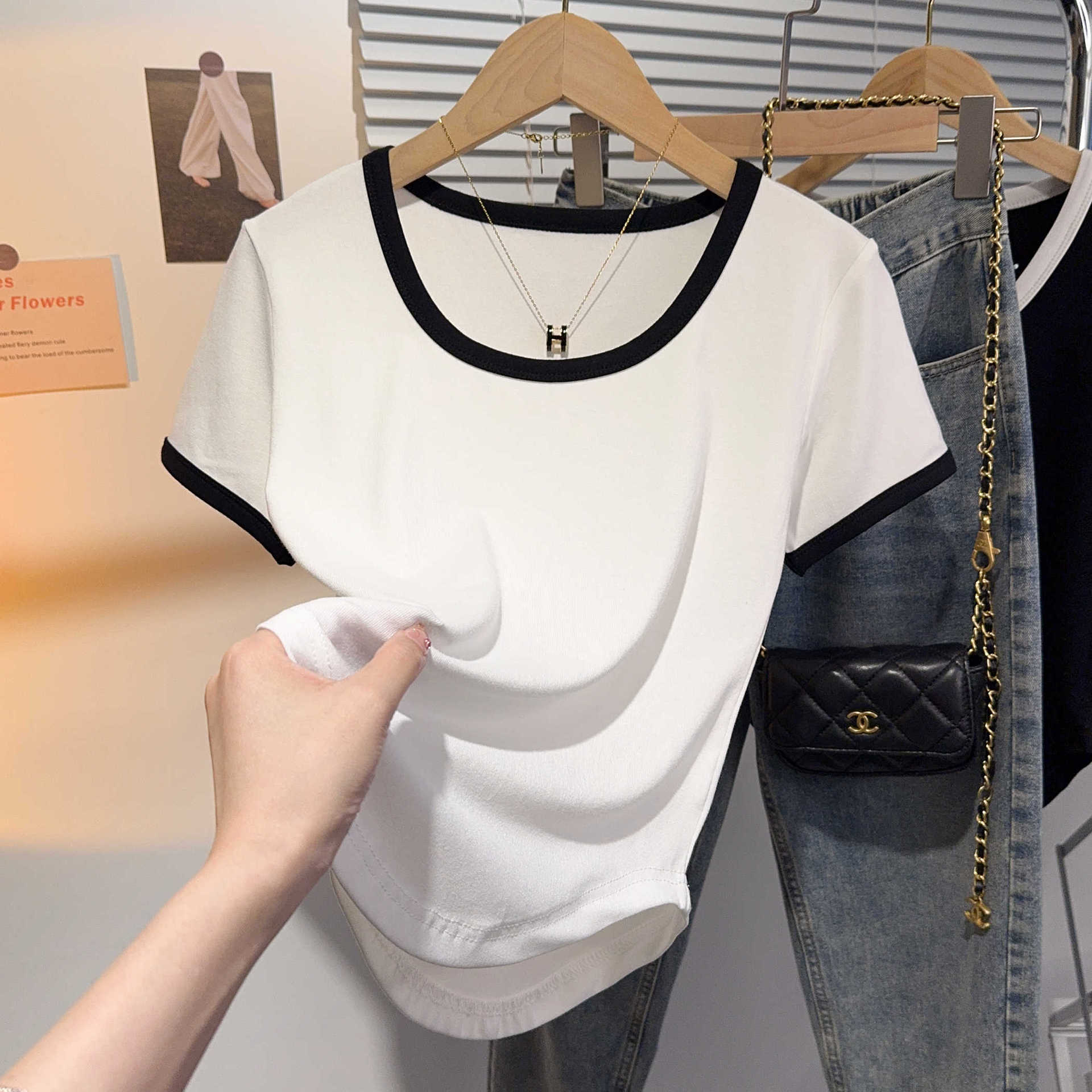 Главная страница > Белая футболка женская рубашка с короткими рукавами летняя тонкая рубашка с воротником темперамент