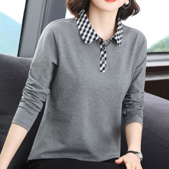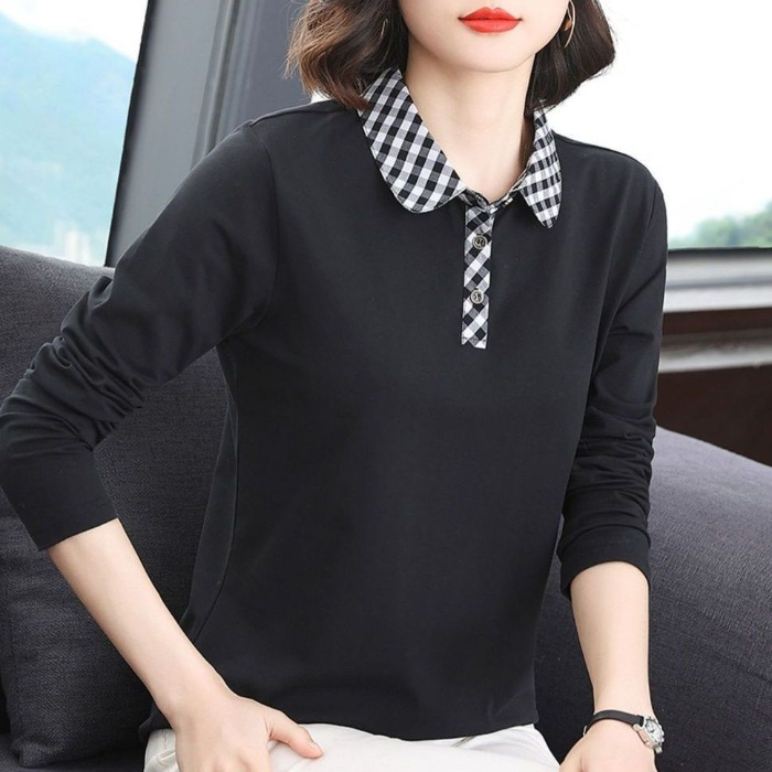 Внешняя торговля темперамент футболка с длинными рукавами женская весна и осень 2025 новая рубашка большой размер мама одежда POLO лацканный топ