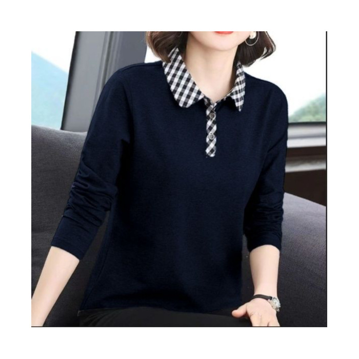 Главная страница > Внешняя торговля темперамент футболка с длинными рукавами женская весна и осень 2025 новая рубашка большой размер мама одежда POLO лацканный топ