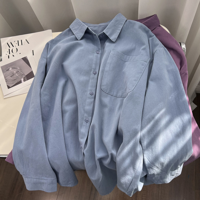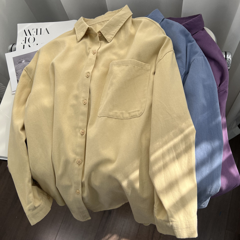 Главная страница > Мягкая и нежная однотонная хлопковая рубашка в корейском стиле для женщин, новая модель весны и осени 2024 года, многослойная внутренняя одежда, свободная повседневная верхняя куртка.