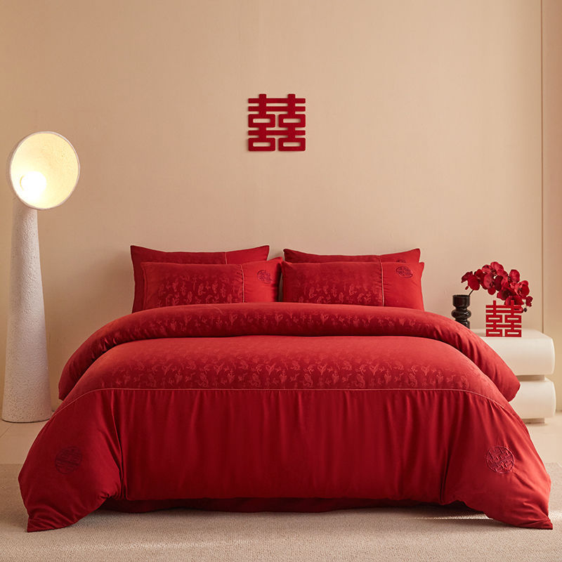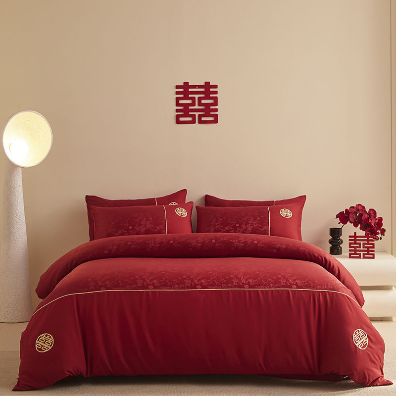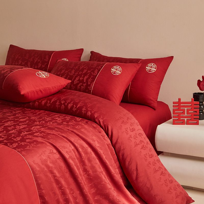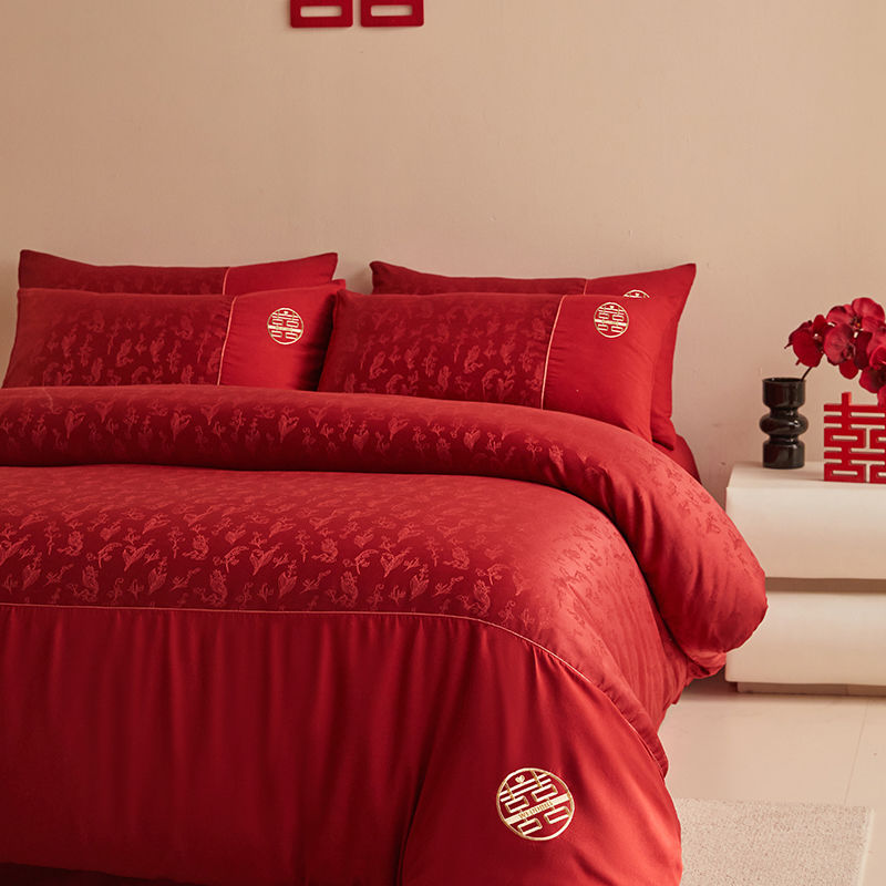 Главная страница > Китайская свадебная длинная хлопчатобумажная набор из четырех частей жаккардовая красная простыня