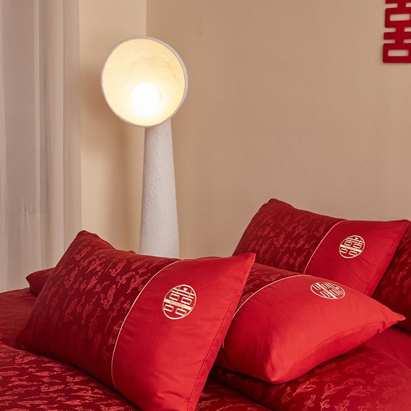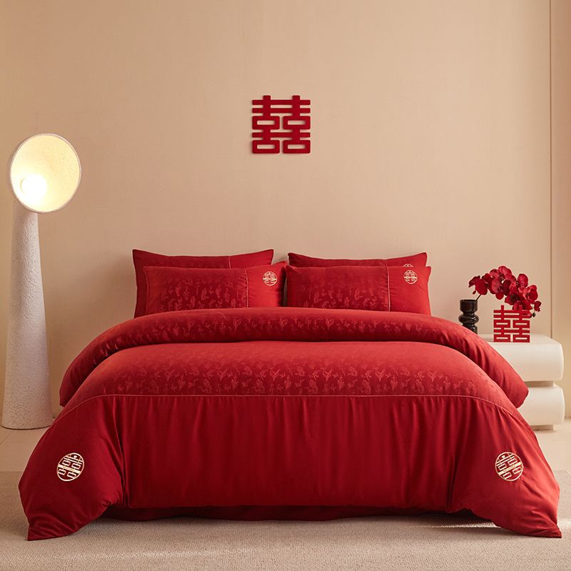 Китайская свадебная длинная хлопчатобумажная набор из четырех частей жаккардовая красная простыня