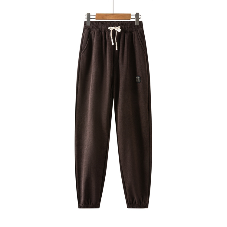 Главная страница > Мужские повседневные брюки из капокового вельвета на флисовой подкладке, осень-зима 2025, свободные универсальные джоггеры, ультратонкие полосатые мужские брюки