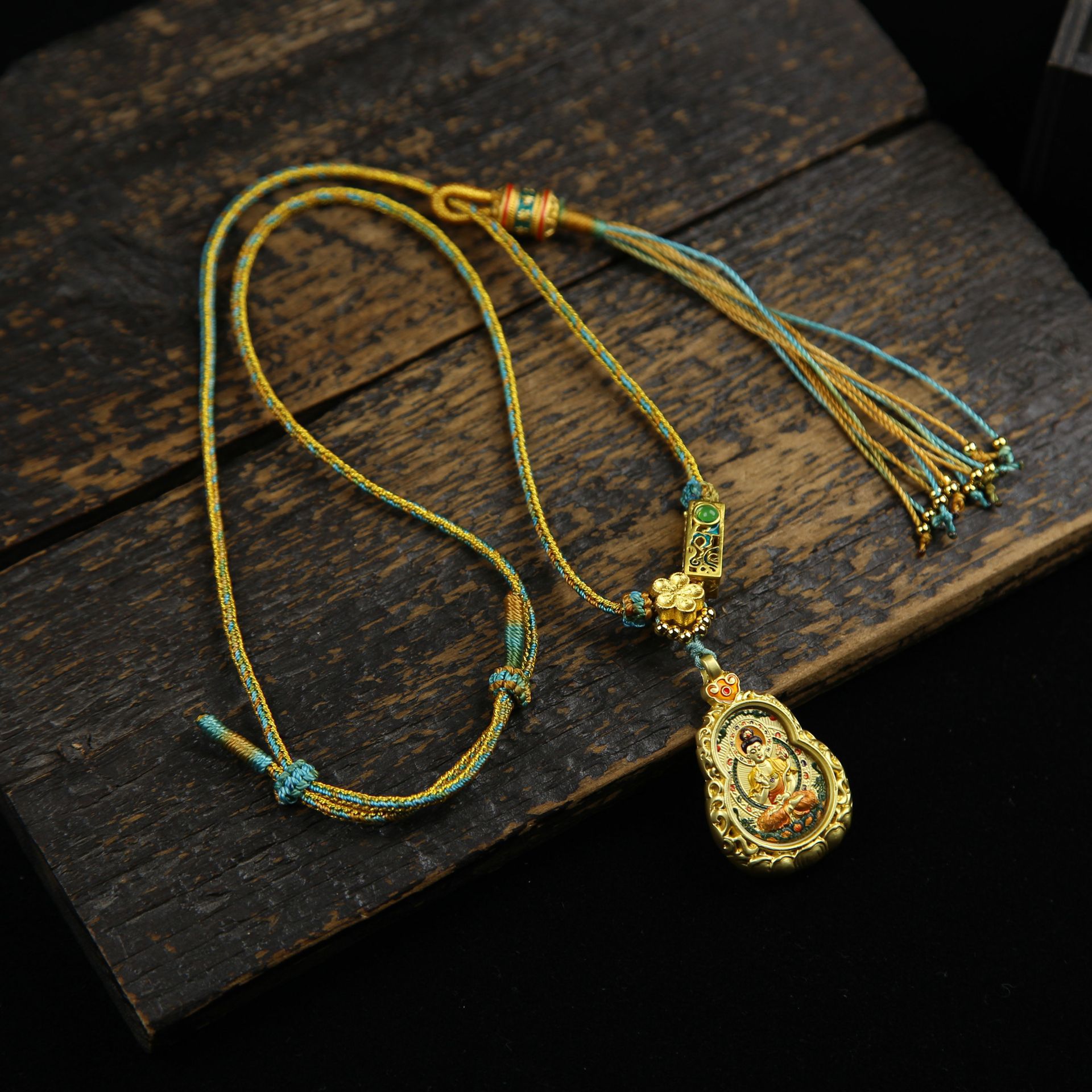 Тысячелистная Гуаньинь-хранительница, крыса-золотой лотос, тыква, Тангка-дракон, пять лордов + шестизначная зеленая веревка