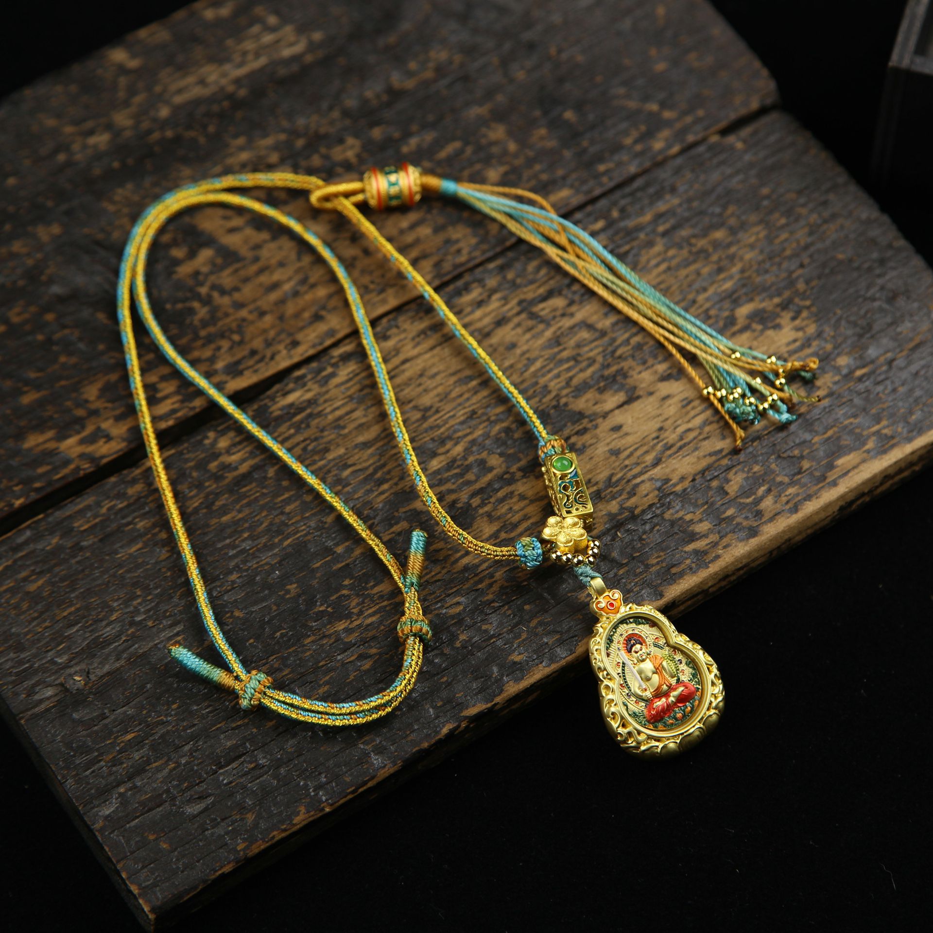 Фудо Мьоох-хранитель курицы-золотой лотос тыквы Тангка-дракон Уэй + шестисимвольная зеленая веревка