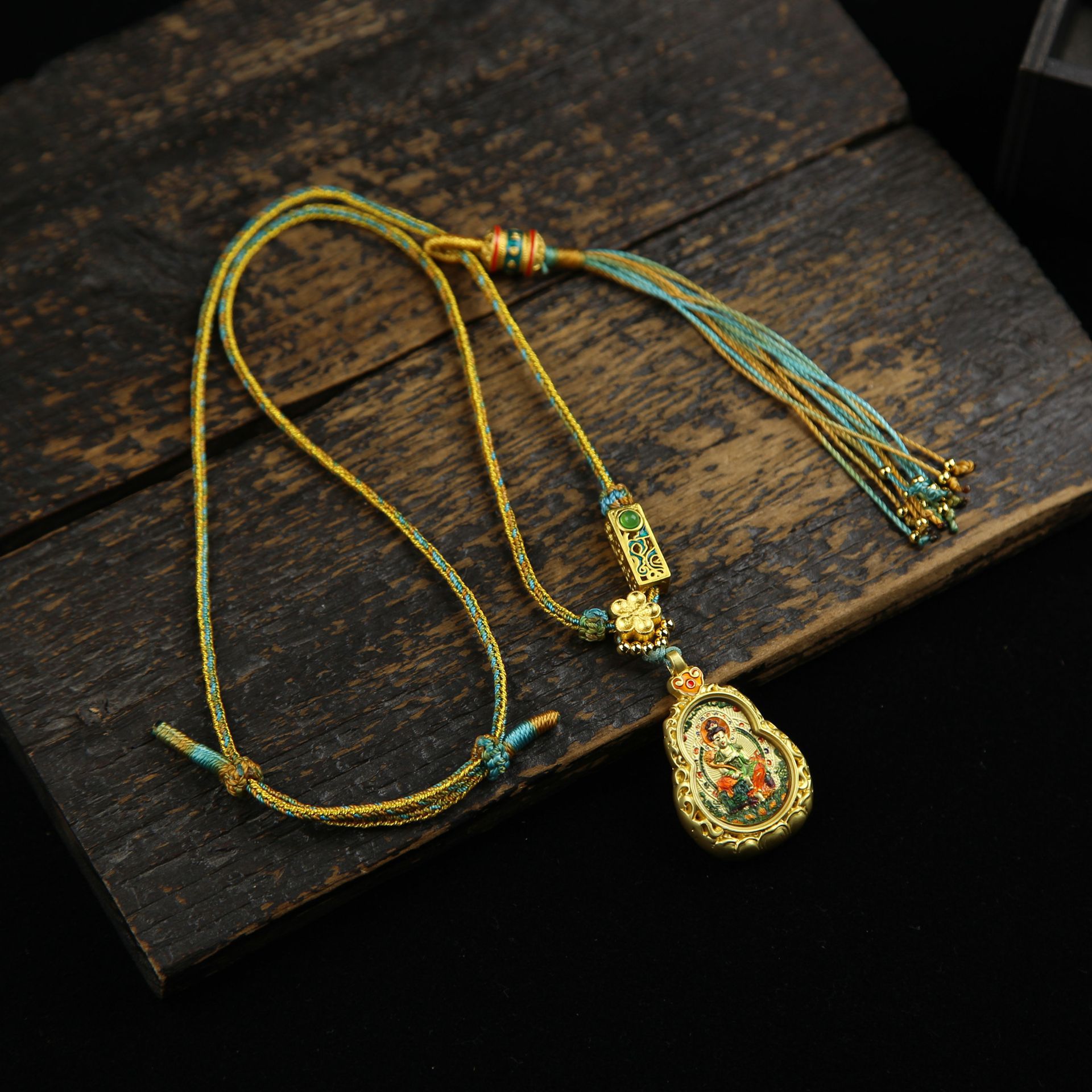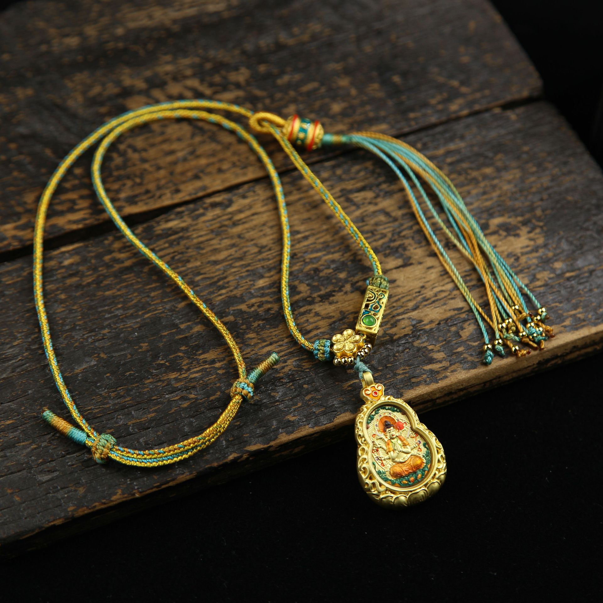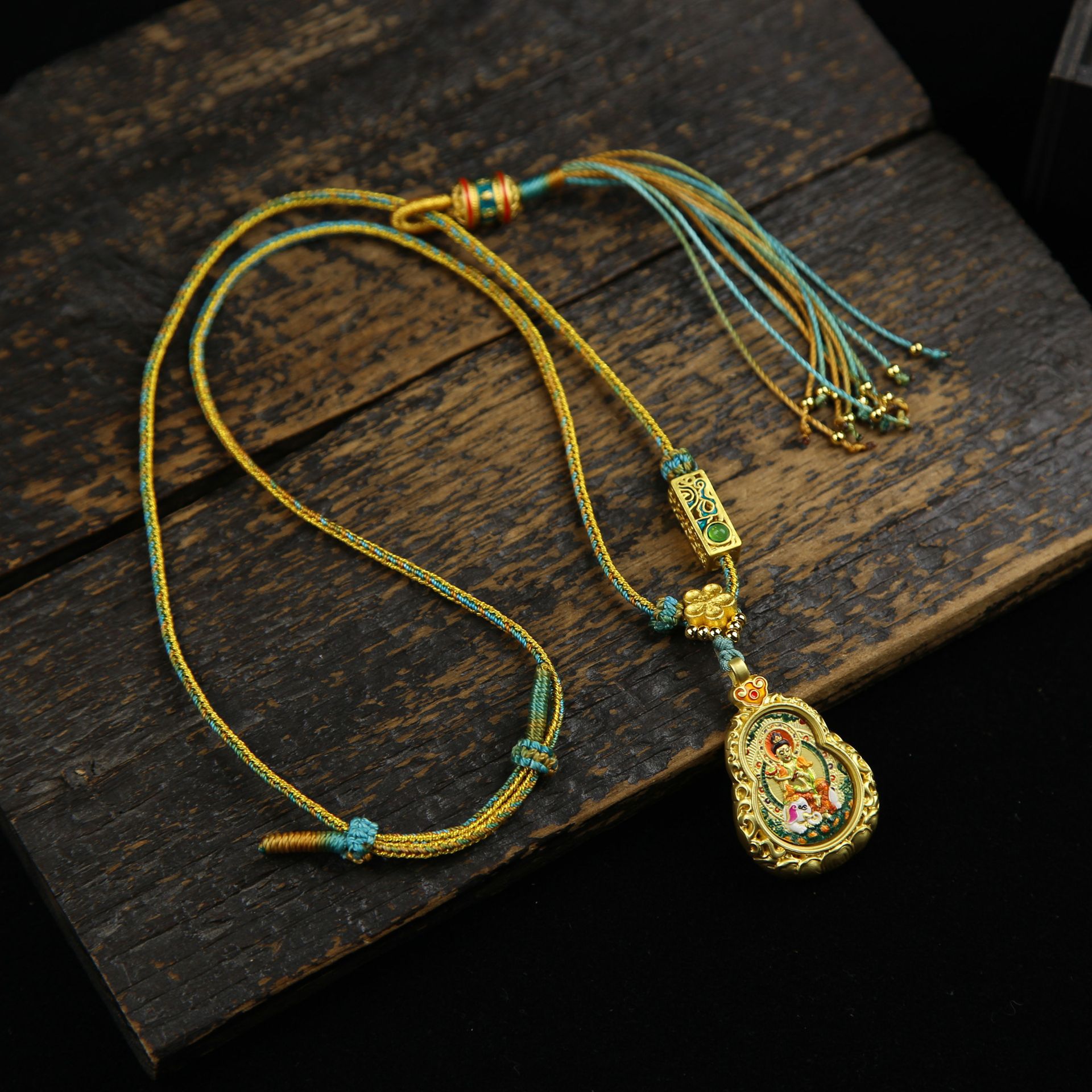 Великий тренд: Бодхисаттва-хранитель, лошадь - Тангка с золотым лотосом и тыквой - Дракон, пять богов + шестислоговая зеленая веревка