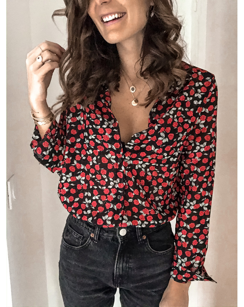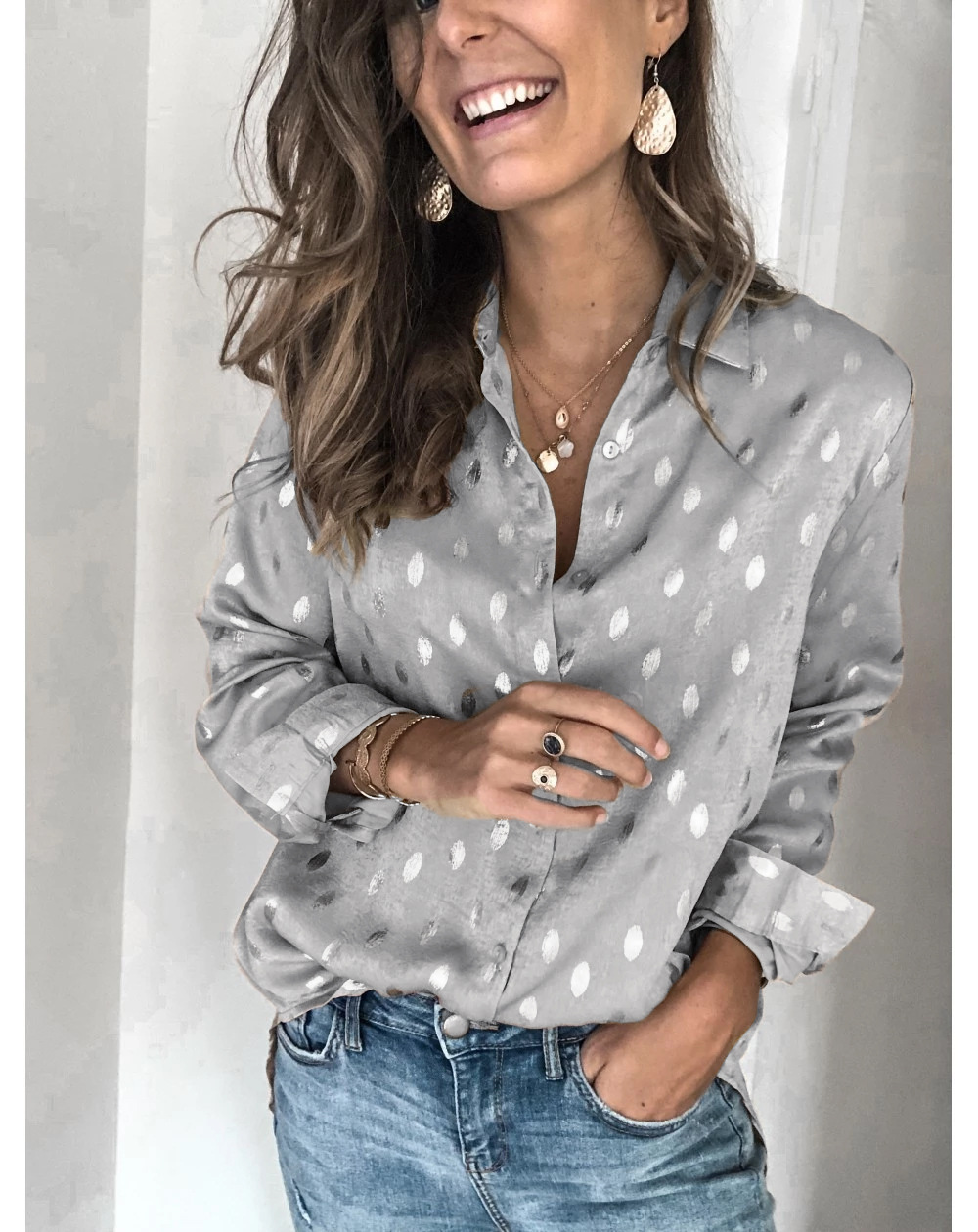 Главная страница > Новая женская блузка весна-лето 2024 в европейском и американском стиле, с длинным рукавом, золотым тиснением и принтом в горошек, уникальный женский топ