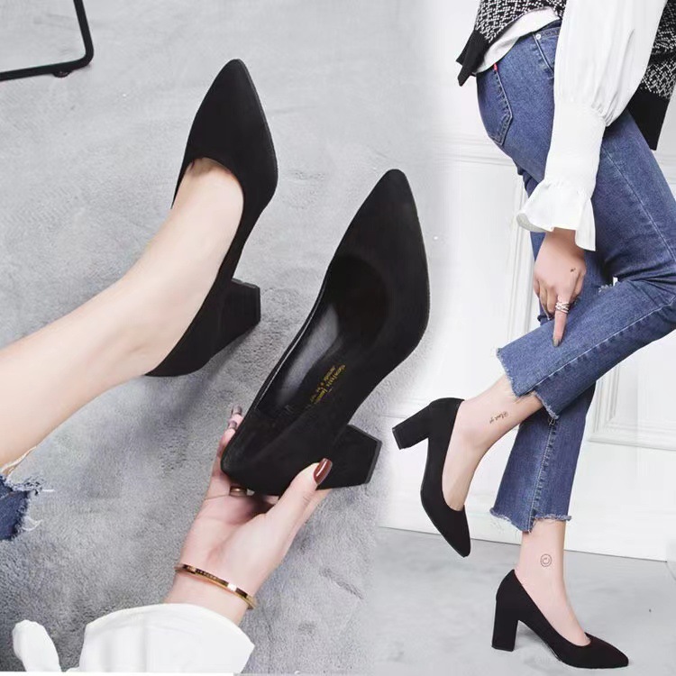 Главная страница > Туфли на высоком каблуке для женщин, осенняя новинка 2025 года, на толстом каблуке, с острым носком, замшевые, модные, простые, для работы