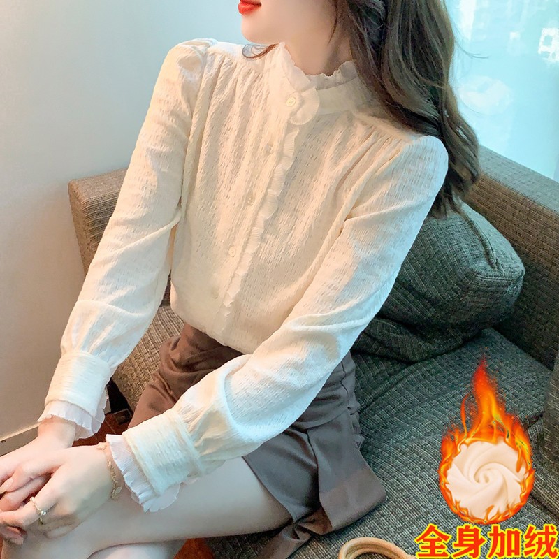 Стильная женская базовая рубашка на осень-зиму 2025 года с толстым кружевом, новая модная модель, внутренний слой, с флисовой подкладкой