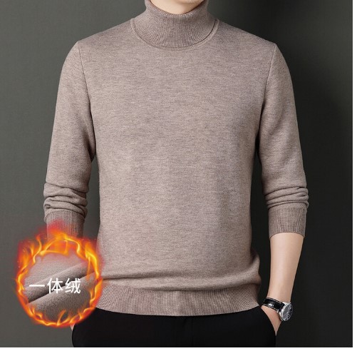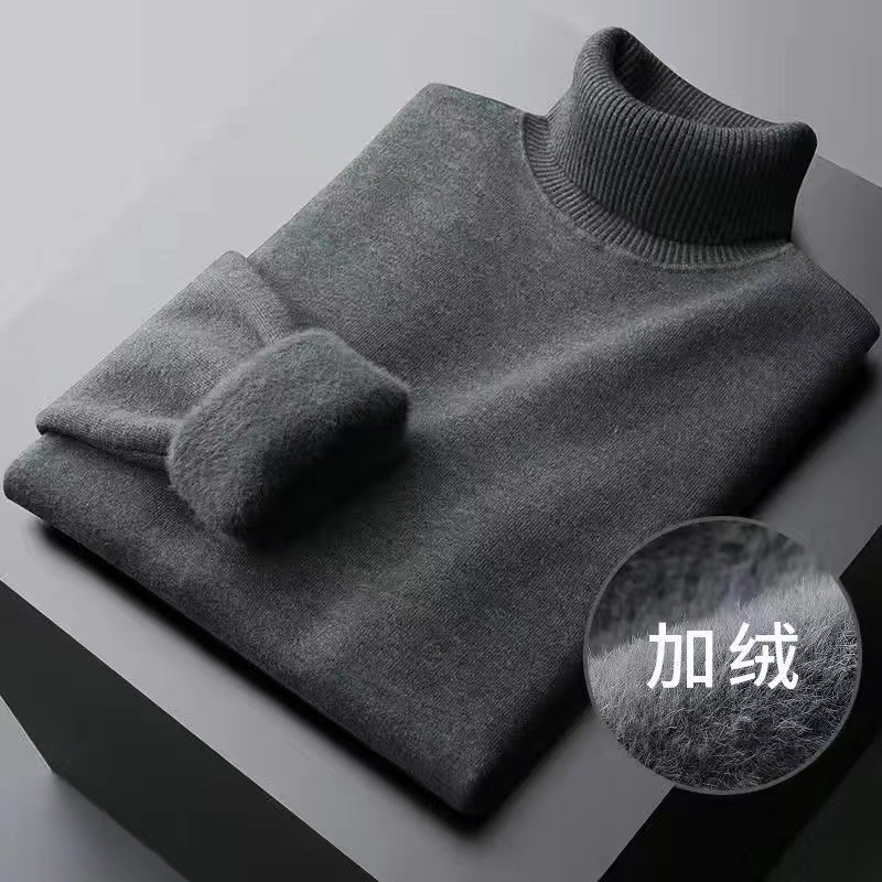 Главная страница > Свитер Мужской утолщенный с высоким воротником Цельный бархатный теплый внутренний костюм с половинным воротником Осенне-зимний свитер Базовый свитер Свитер