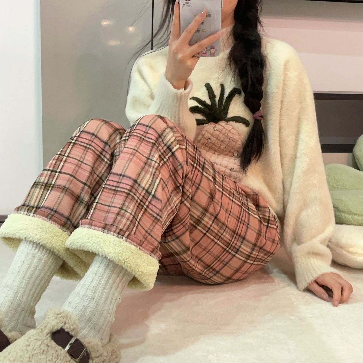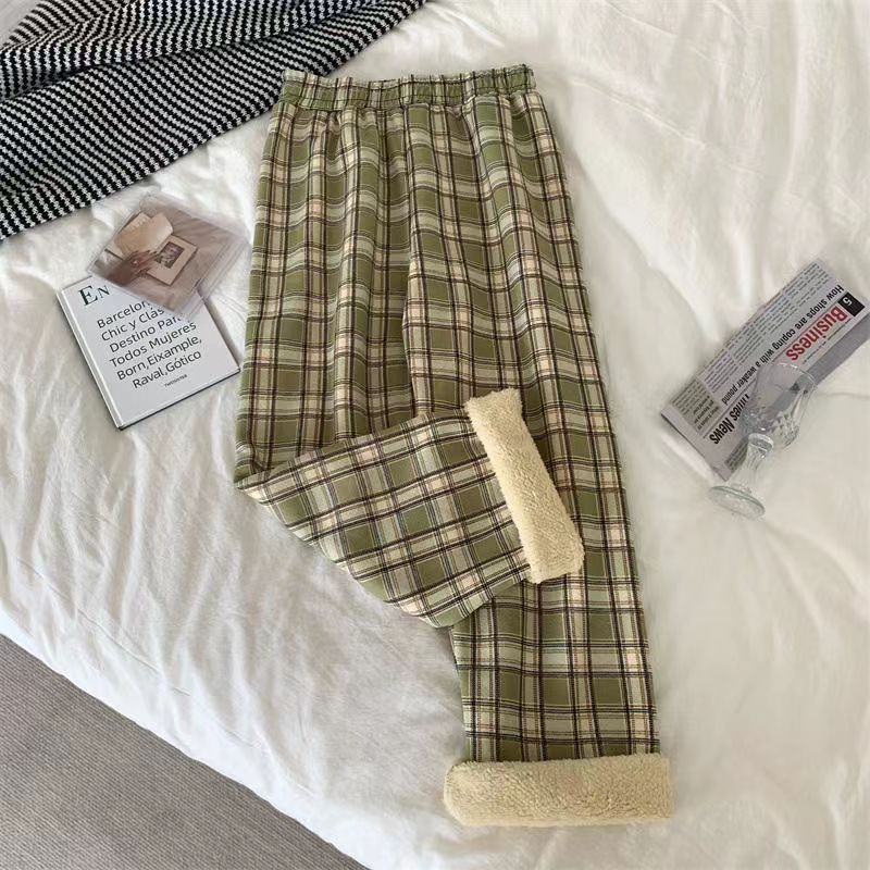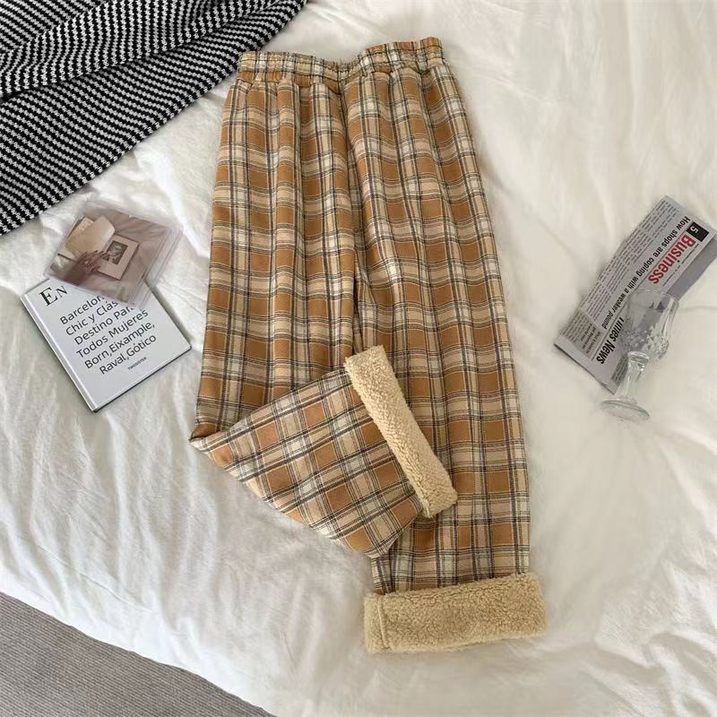 Главная страница > 2021 Зимние новые клетчатые Студенческие Брюки, детские свободные прямые утепленные Теплые повседневные широкие брюки с высокой талией и флисовой подкладкой