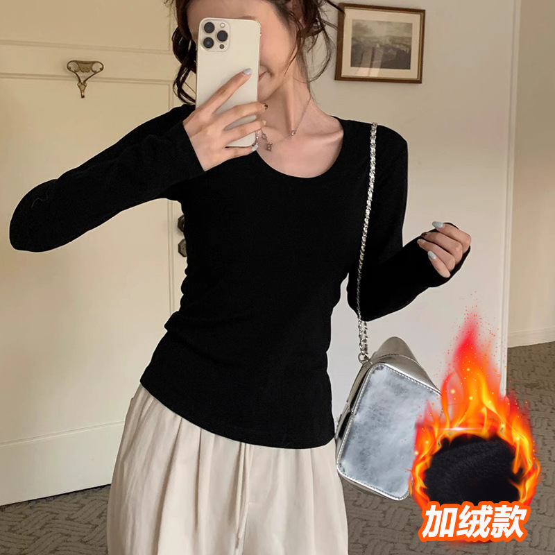 (Круглый вырез, длинные рукава) Черный [Флис]