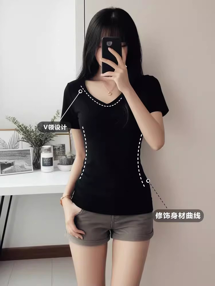 Главная страница > Черная футболка с прямыми плечами женская рубашка с короткими рукавами