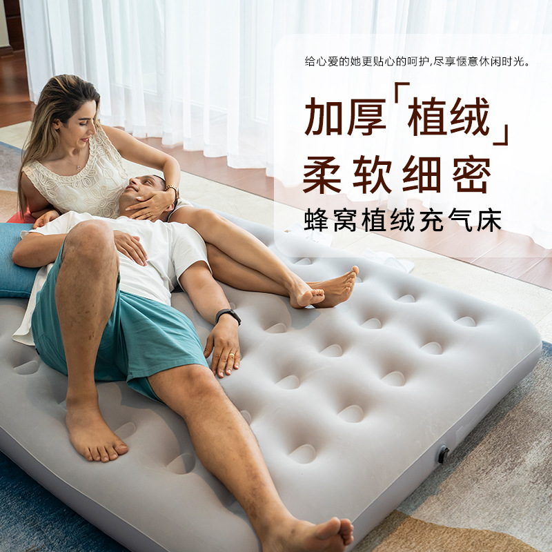 Главная страница > Надувной двухместный матрас для улицы и дома, складная кровать для сна на полу, портативная надувная кровать увеличенного размера с флокированным покрытием для кемпинга