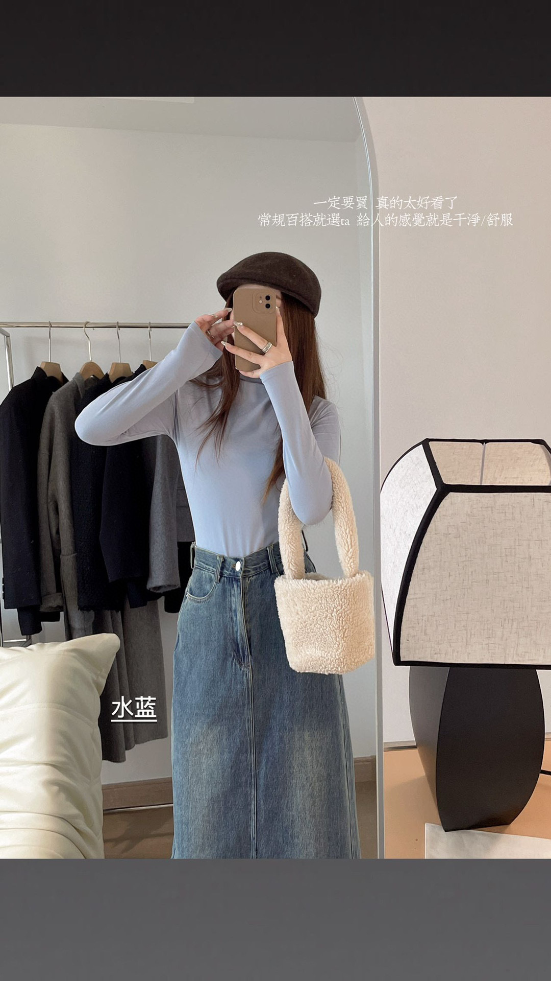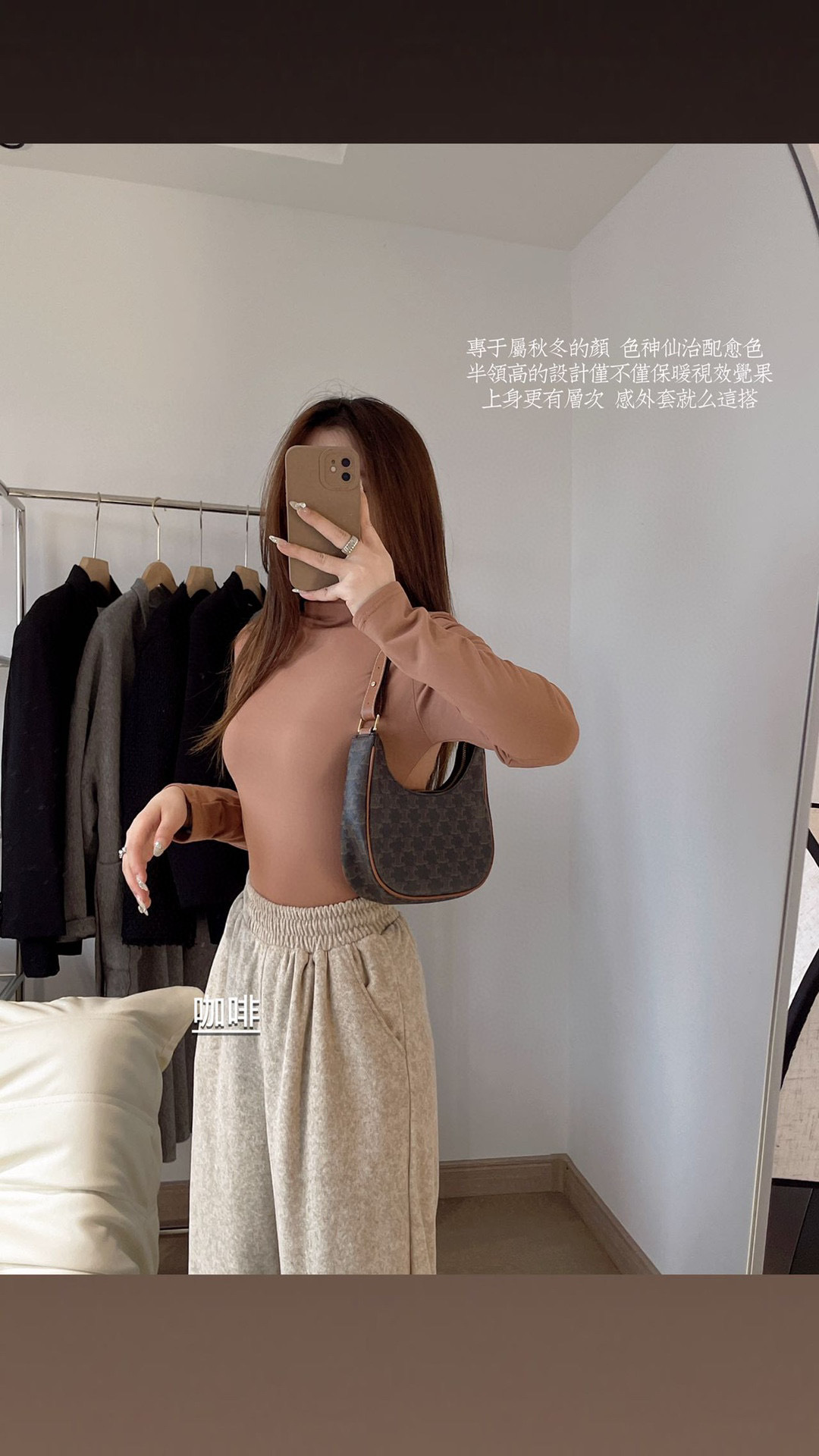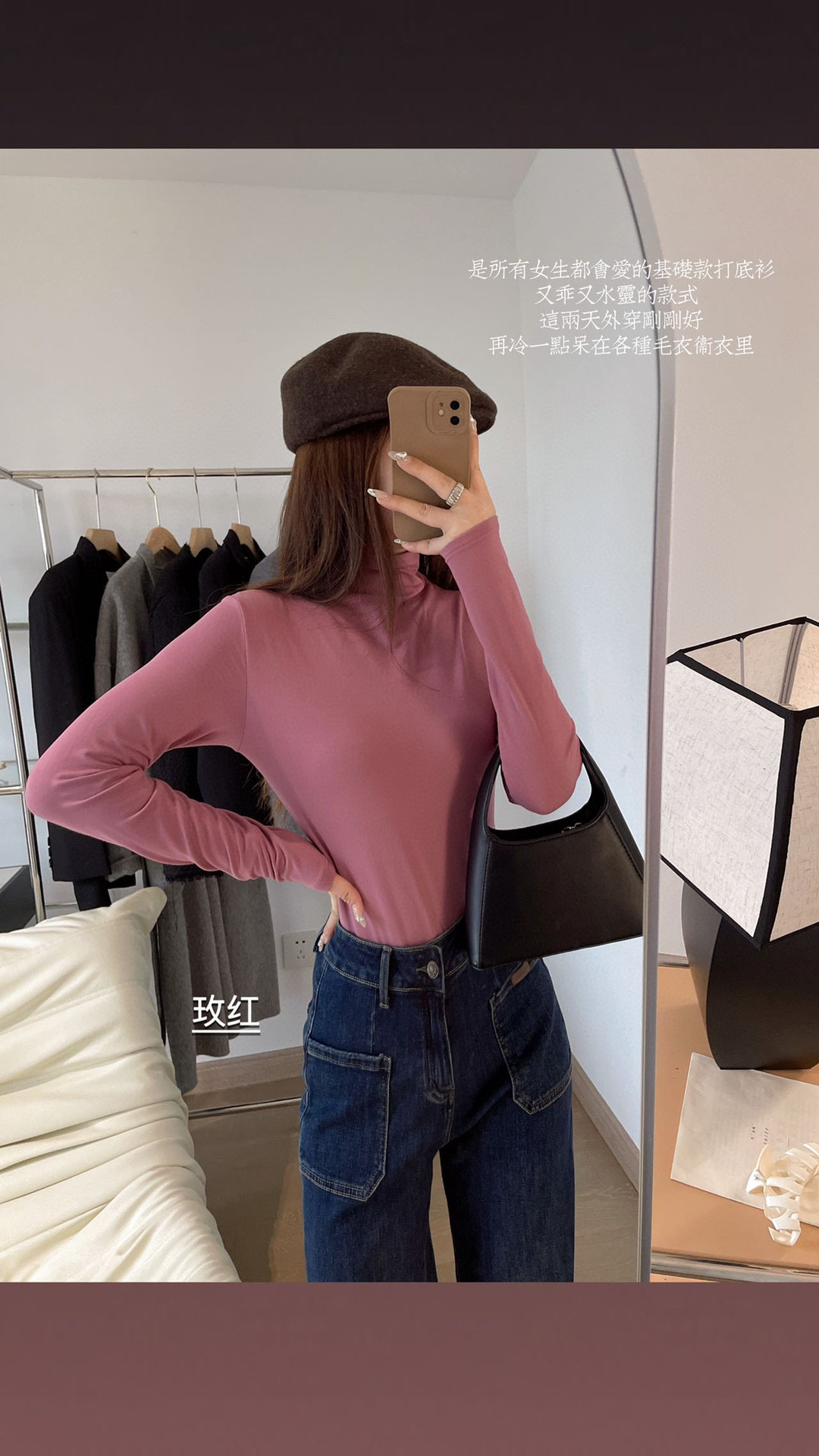 Главная страница > Рубашка подруги 12 цветов с постоянной температурой, приятная для кожи, нижняя рубашка с полувысоким воротником, футболка с длинными рукавами, осенне-зимний облегающий топ в иностранном стиле