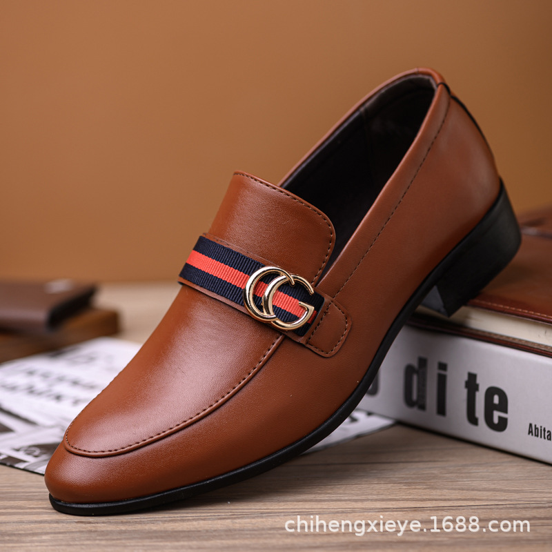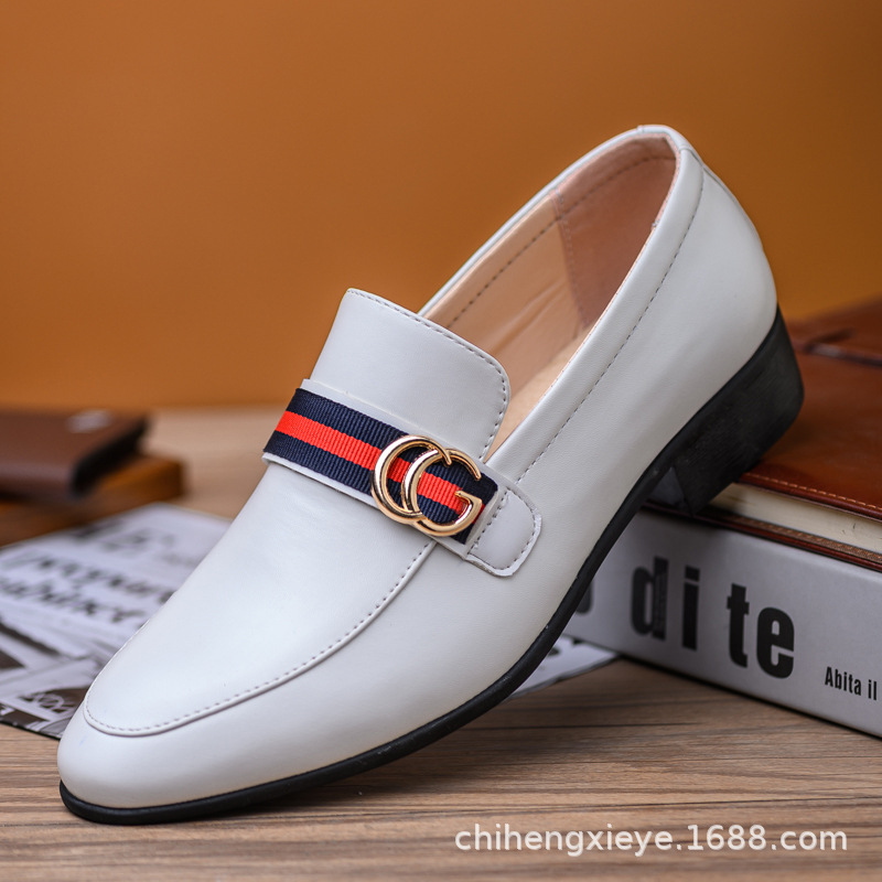 Главная страница > Кожаные туфли с острым носком в Корейском стиле, мужская повседневная мужская обувь без шнуровки, дышащая обувь в британском стиле с металлической пряжкой, Высококачественная обувь в горох