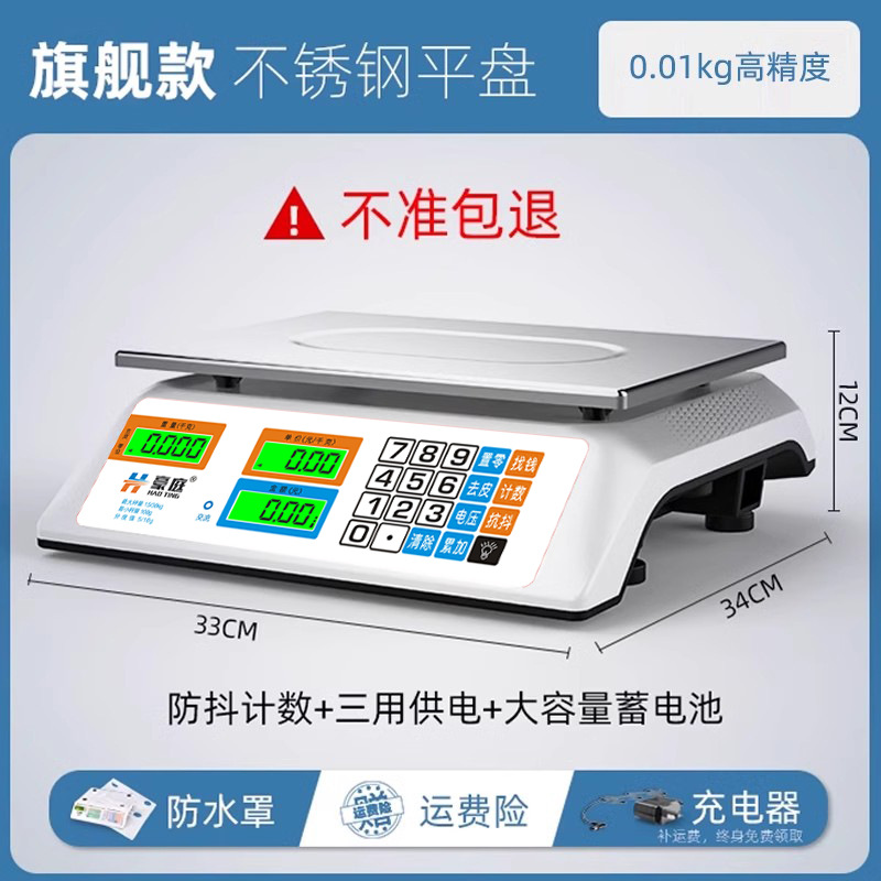 [Флагманская модель] 30kg черная стальная плоская чаша (трехцелевая, увеличенная чаша для взвешивания, защита от тряски, подсчет)